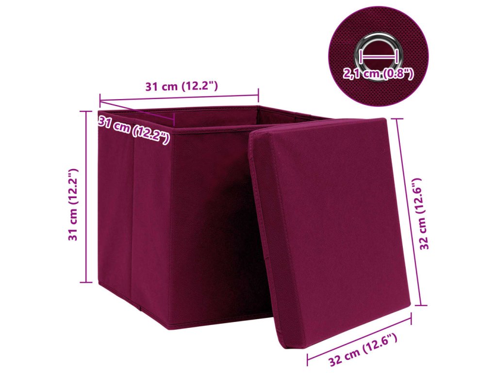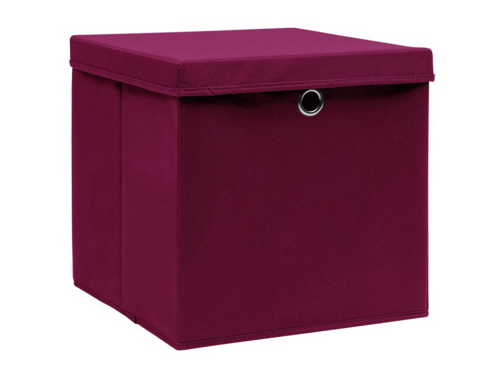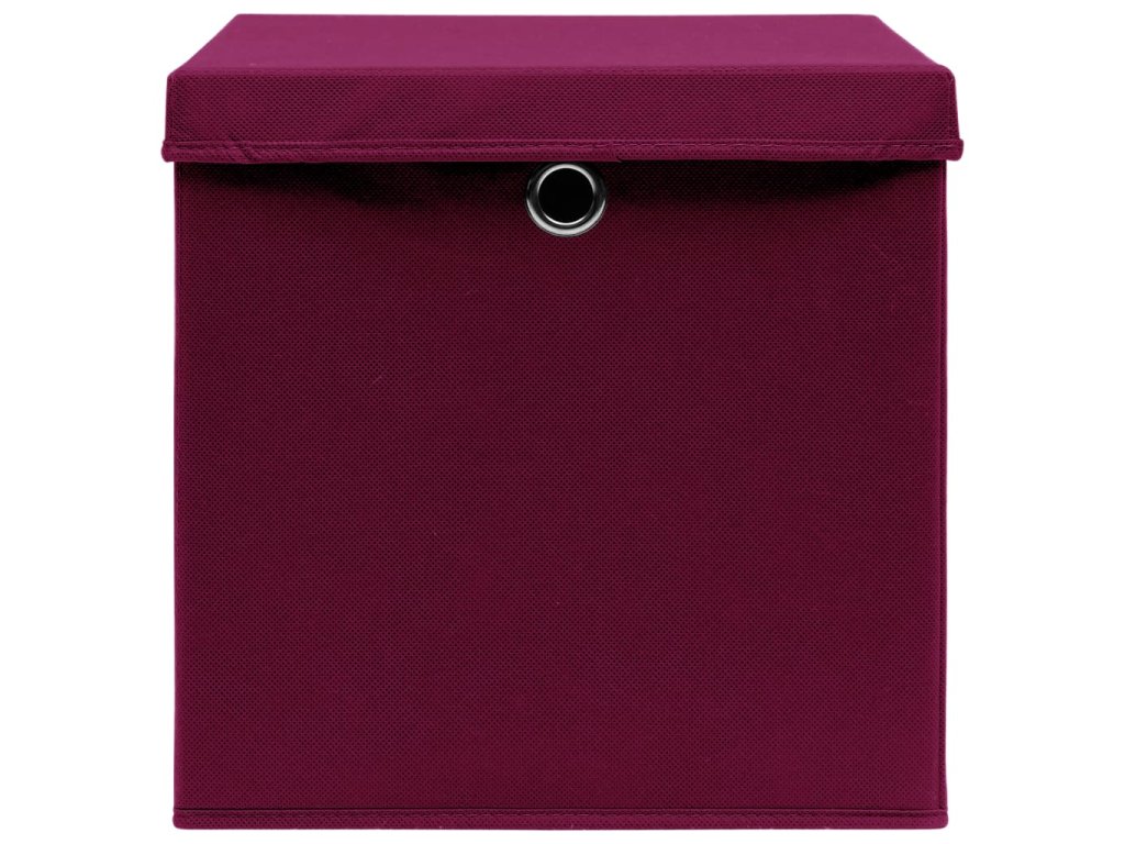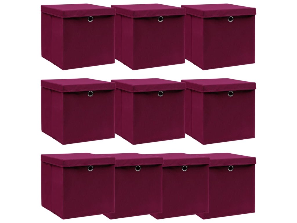 Úložné boxy s víky 10 ks tmavě červené 32 x 32 x 32 cm textil 288344