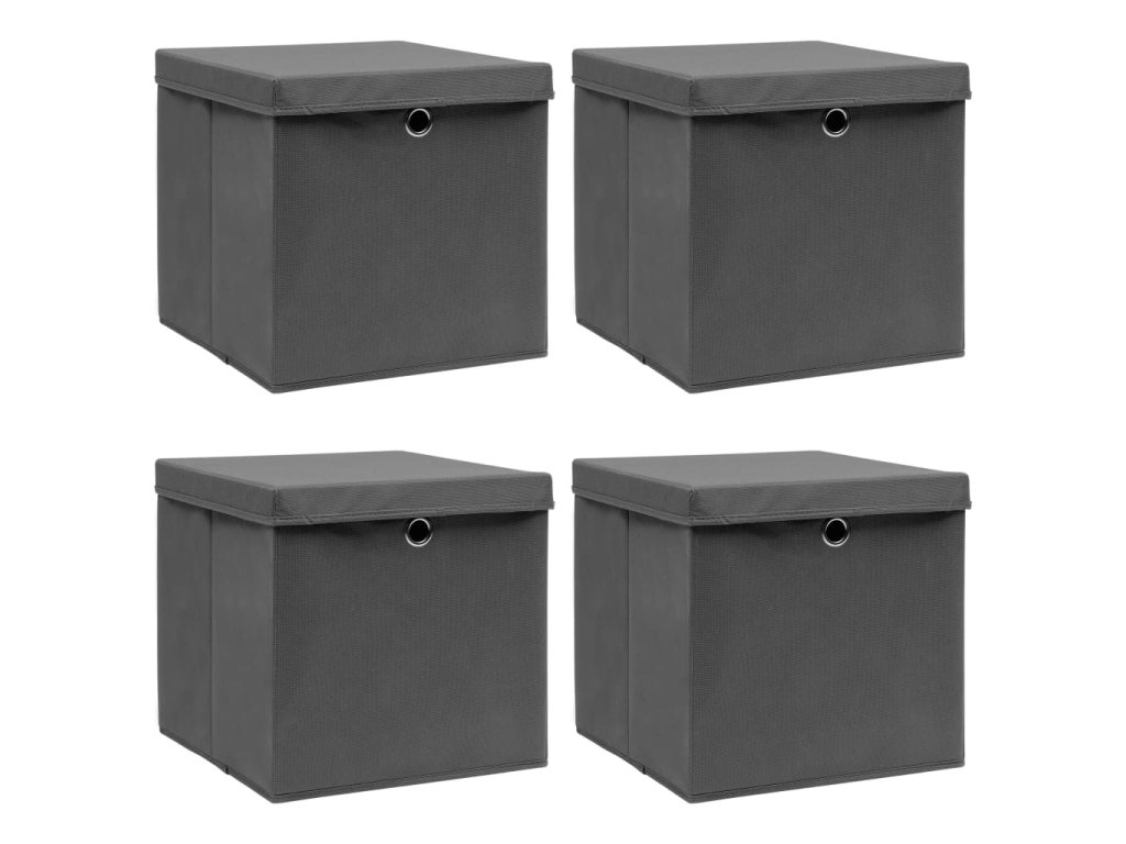 Úložné boxy s víky 4 ks šedé 32 x 32 x 32 cm textil 288335