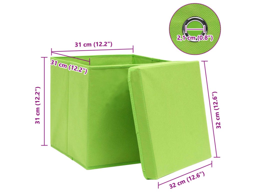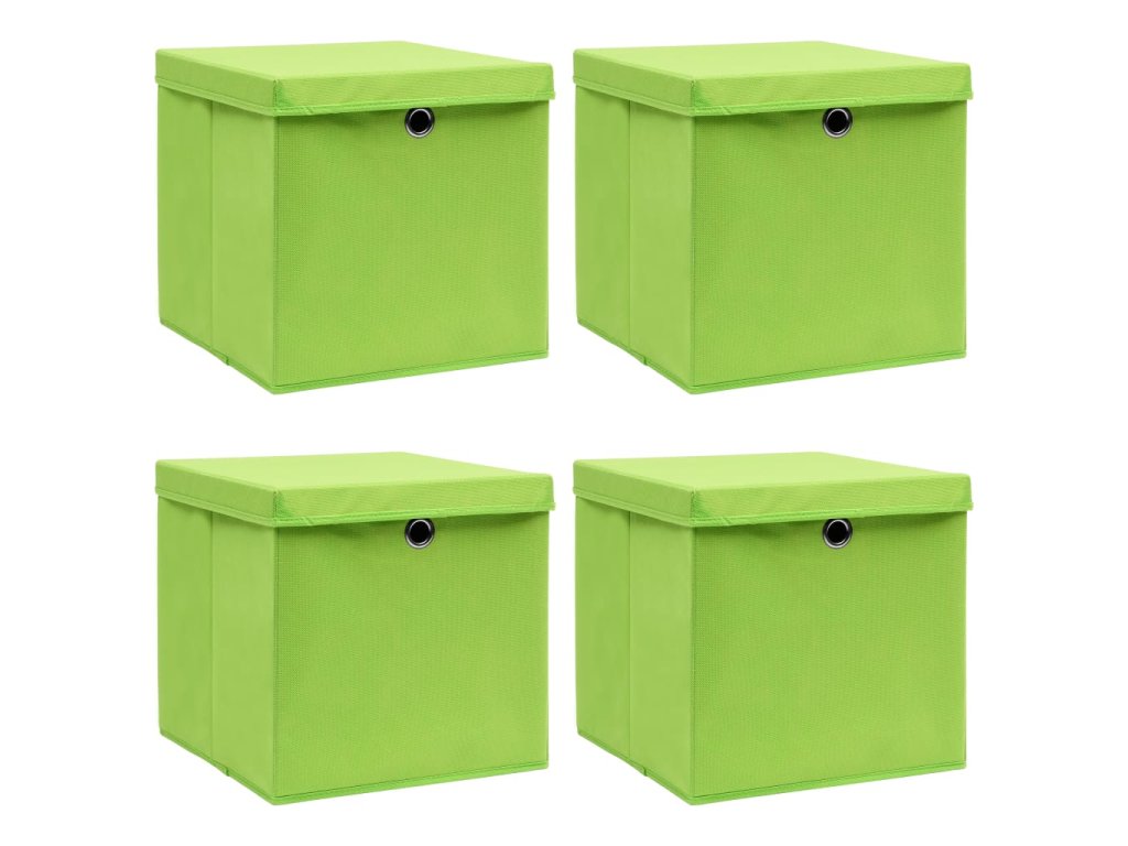 Úložné boxy s víky 4 ks zelené 32 x 32 x 32 cm textil 288370