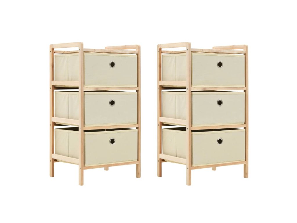 Úložné regály se 3 látkovými košíky 2 ks béžové cedrové dřevo 276231