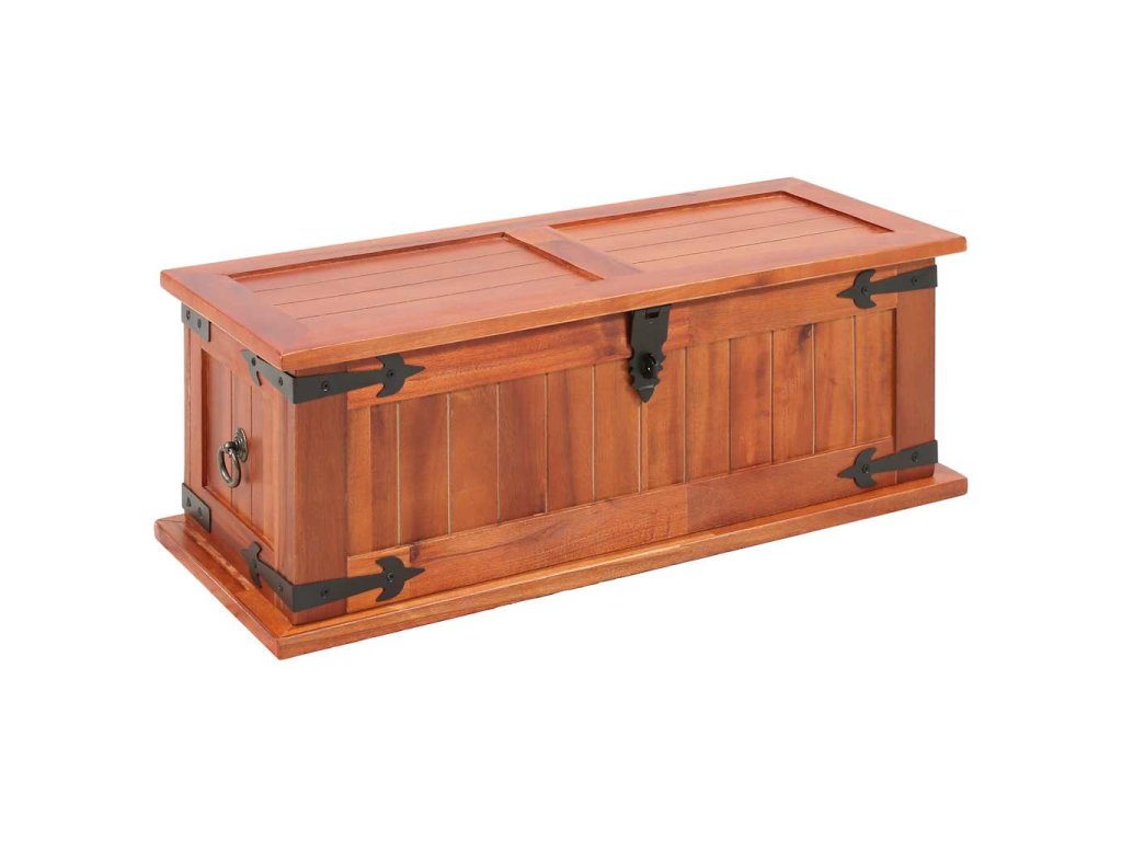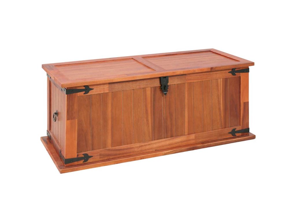 Úložný box vám poskytne spoustu místa, kam si můžete uložit své oblečení, časopisy, knížky, nářadí a další věci. Na přední straně má západku, zatímco boční strany jsou opatřeny úchytkami. Horní víko dřevěné truhly tvoří pevná deska, můžete ji tedy rovněž využít jako konferenční stolek, stolek k pohovce, stolek do obývacího pokoje, odkládací stolek, přístavný stolek apod. Box je ručně vyroben z masivního akáciového dřeva. Zručné zpracování a překrásná kresba dřeva navíc činí každý kus nábytku zcela jedinečným a lehce odlišným od ostatních.