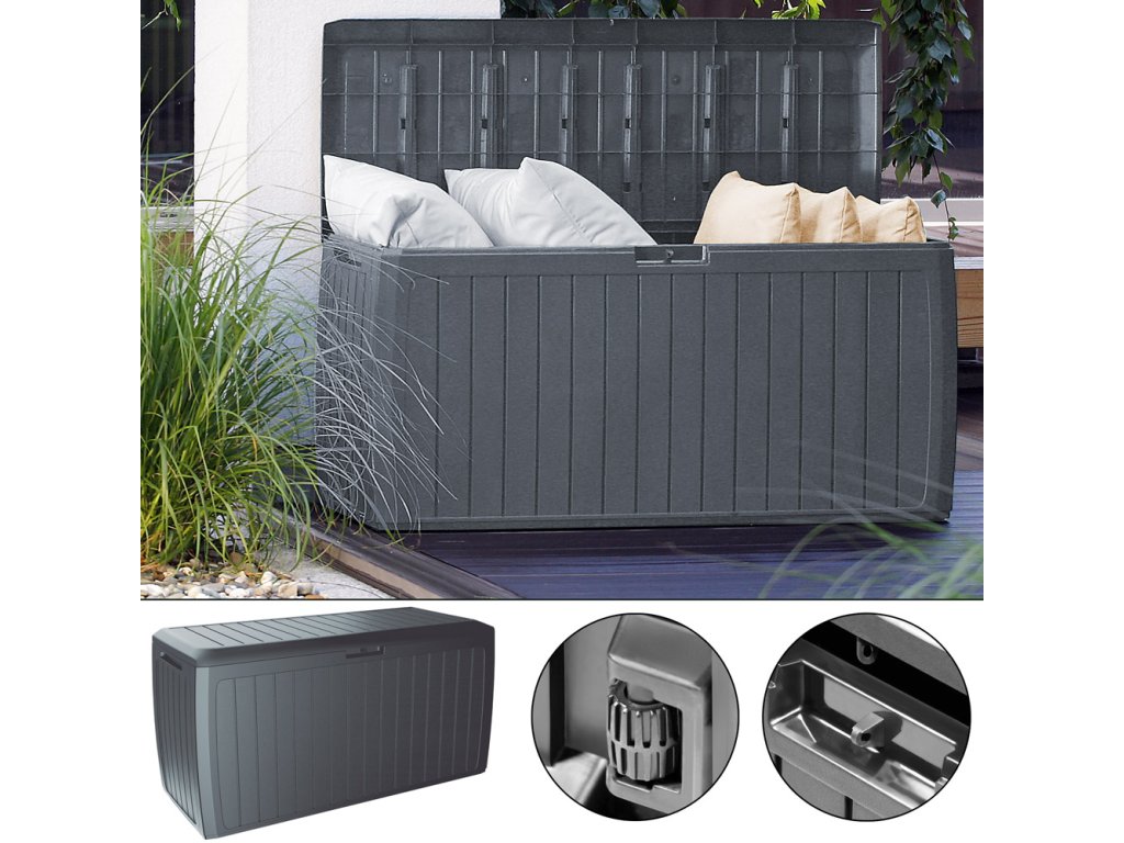 Praktické a stylové řešení pro uložení zahradních potřeb! Úložný box Board Plus o objemu 290 litrů je ideální pro bezpečné uložení sedáků, dek, zahradního náčiní nebo hraček. Díky odolnému plastovému provedení z polypropylenu je box wetterodolný, UV-odolný a snadno udržovatelný, což z něj činí skvělou volbu pro venkovní použití.