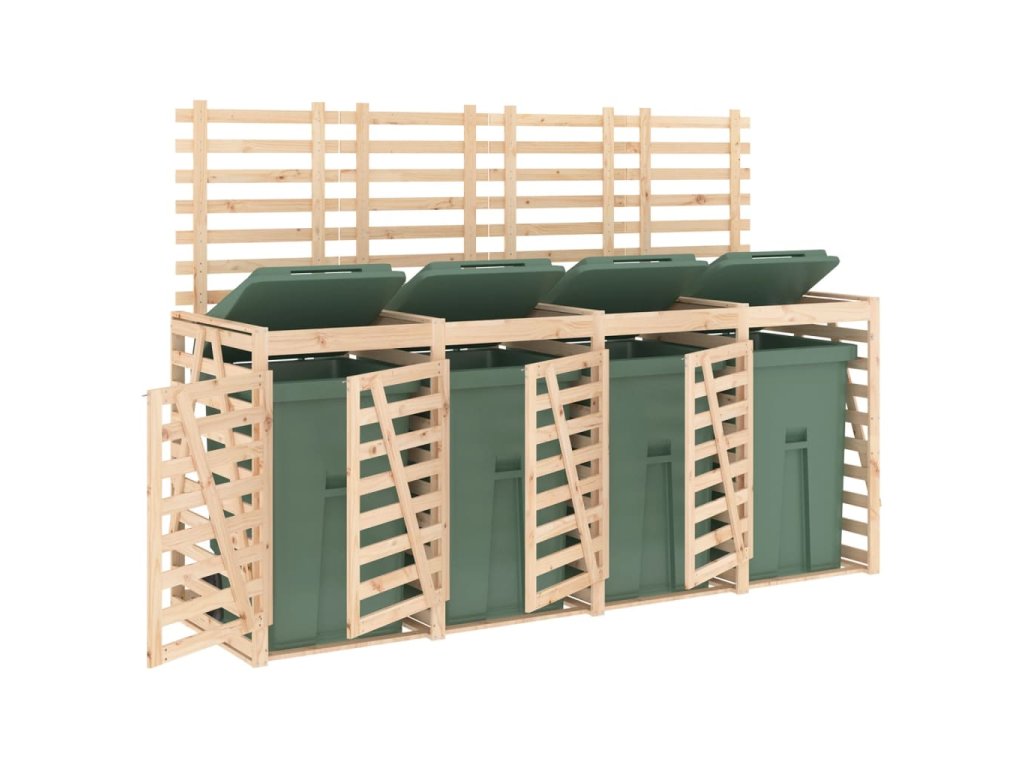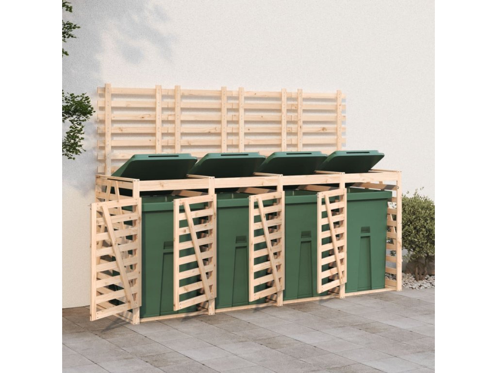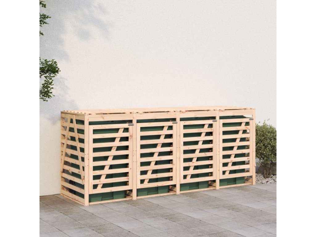 Úložný box na čtyři popelnice masivní borové dřevo 3157697