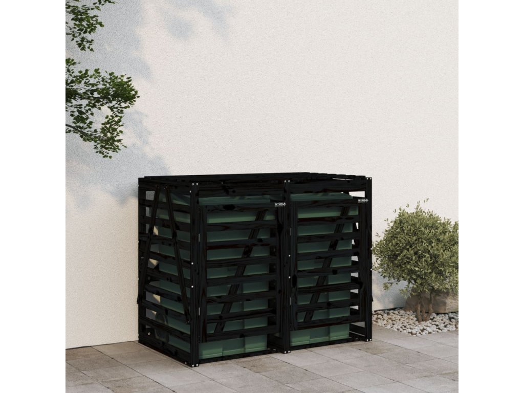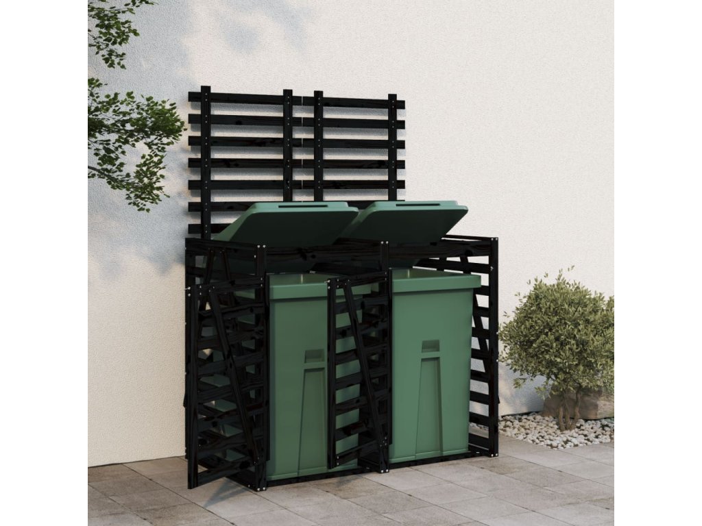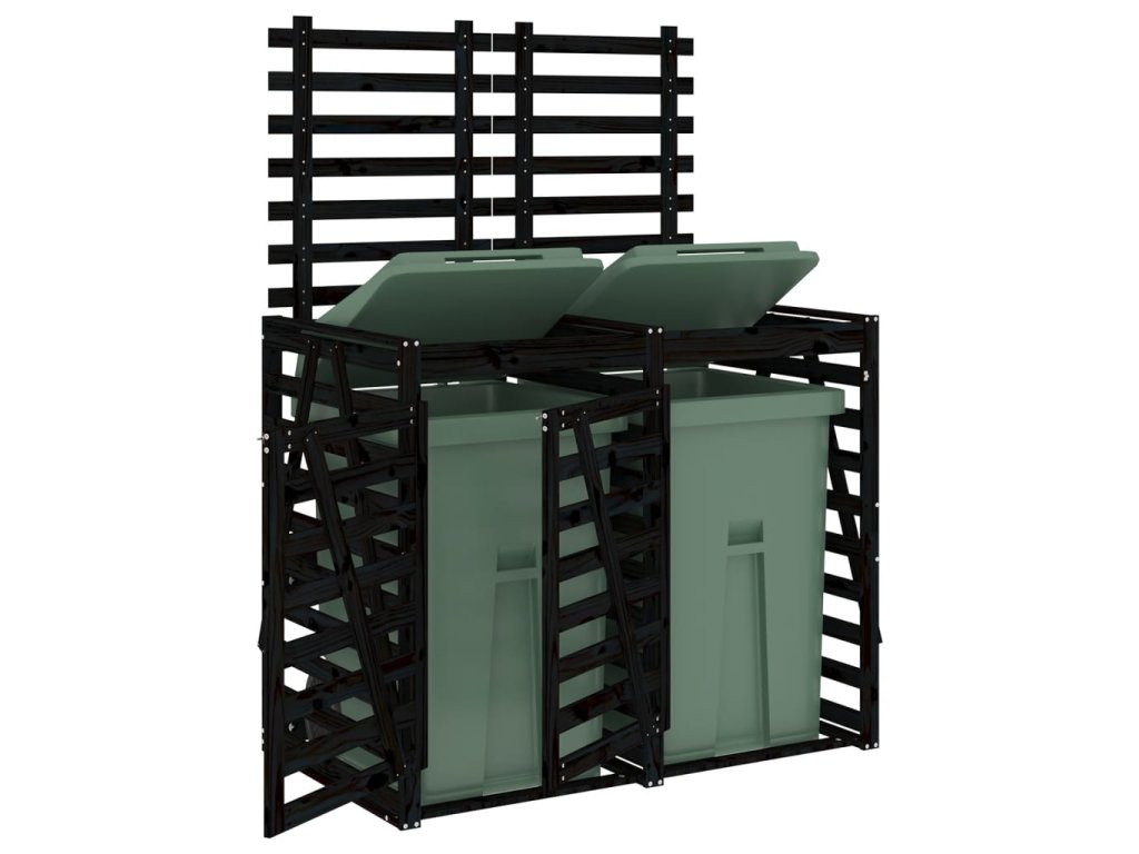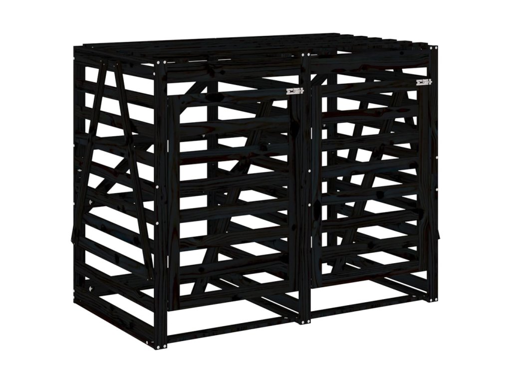 Úložný box na dvě popelnice černý masivní borové dřevo 3157689