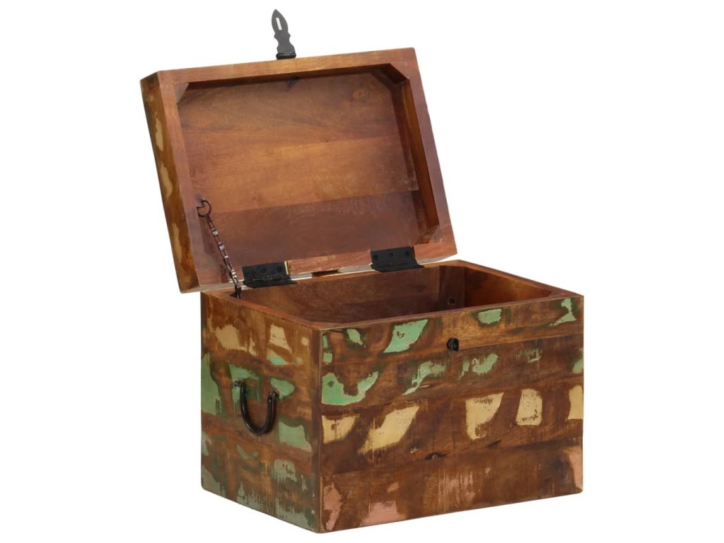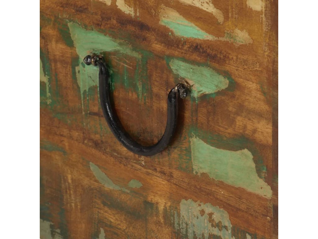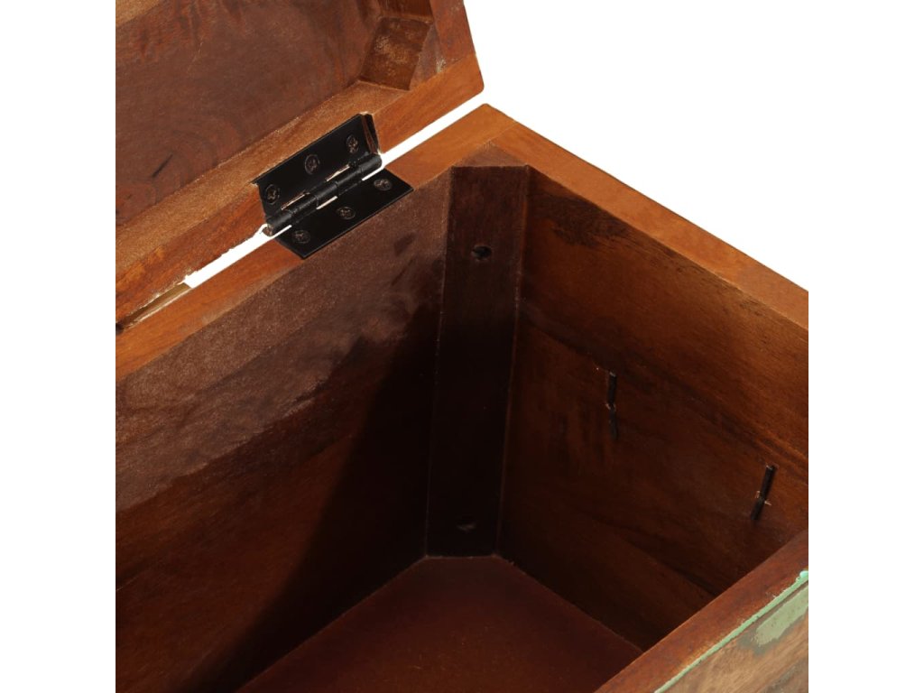 Tento úložný box je vyrobený z recyklovaného dřeva, což znamená, že každý kus nábytku je jedinečný a lehce se odlišuje od ostatních. Nábytek vyrobený z recyklovaného dřeva má vlastnosti různých druhů dřeva, jako je teak, akácie, mango, damarovník atd. Recyklované dřevo masivní, solidní, trvanlivé a krásné. Otvory po hřebících nebo odhalená struktura dřeva s sebou nesou jeho historii a vyzývají další generace, aby k ní přidali tu svoji. Tento kus nábytku ve vašem domě ukáže, že vám záleží na zachování zdrojů, ochraně životního prostředí a udržitelném rozvoji.