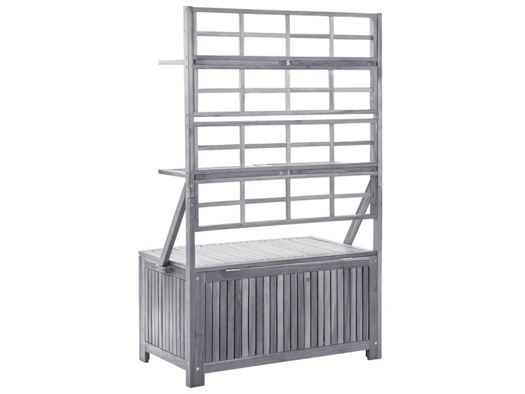 Tento box na podušky je vyrobený z masivního akáciového dřeva, tvrdého dřeva s hustou kresbou. Tento nádherně navržený box je stabilní, odolný a zaujme na první pohled. Zručné řemeslné zpracování a nádherná kresba dřeva navíc propůjčují každému kusu lehce odlišný charakter. Integrovaná treláž nabízí vynikající podporu pro popínavé rostliny. Na police můžete také postavit květináč. 4 přiložené police lze nastavit do různých pozic.