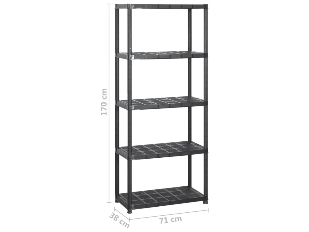 Úložný regál 5patrový černý 284 x 38 x 170 cm plast 3059860