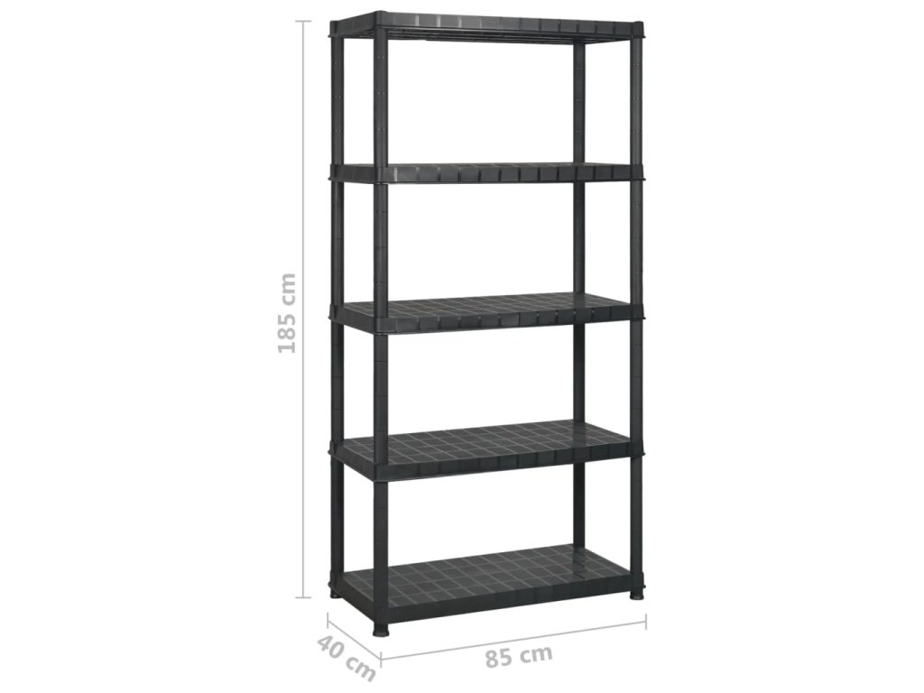 Úložný regál 5patrový černý 340 x 40 x 185 cm plast 3059861