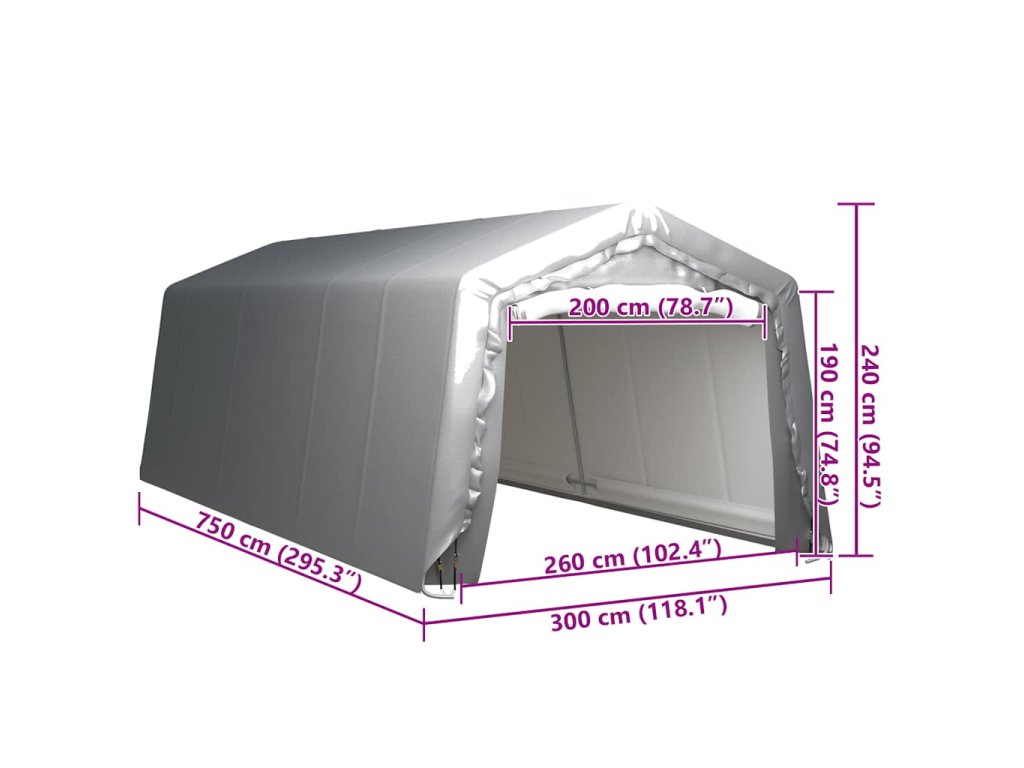 Úložný stan 300 x 750 cm ocel šedý 3079589