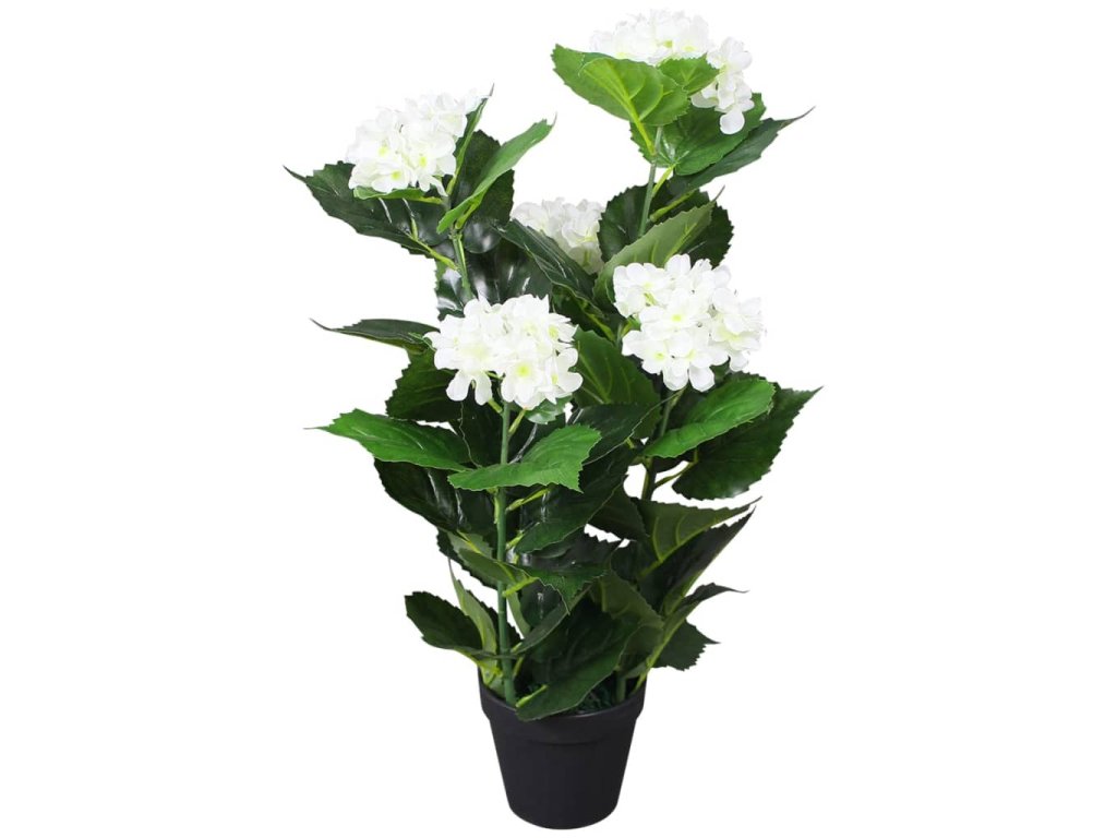 Umělá rostlina hortenzie s květináčem 60 cm bílá 244441
