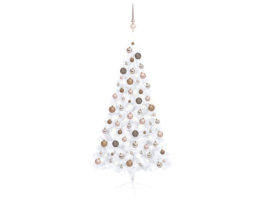 Umělý vánoční půl stromek s LED a sadou koulí bílý 150 cm 3077569