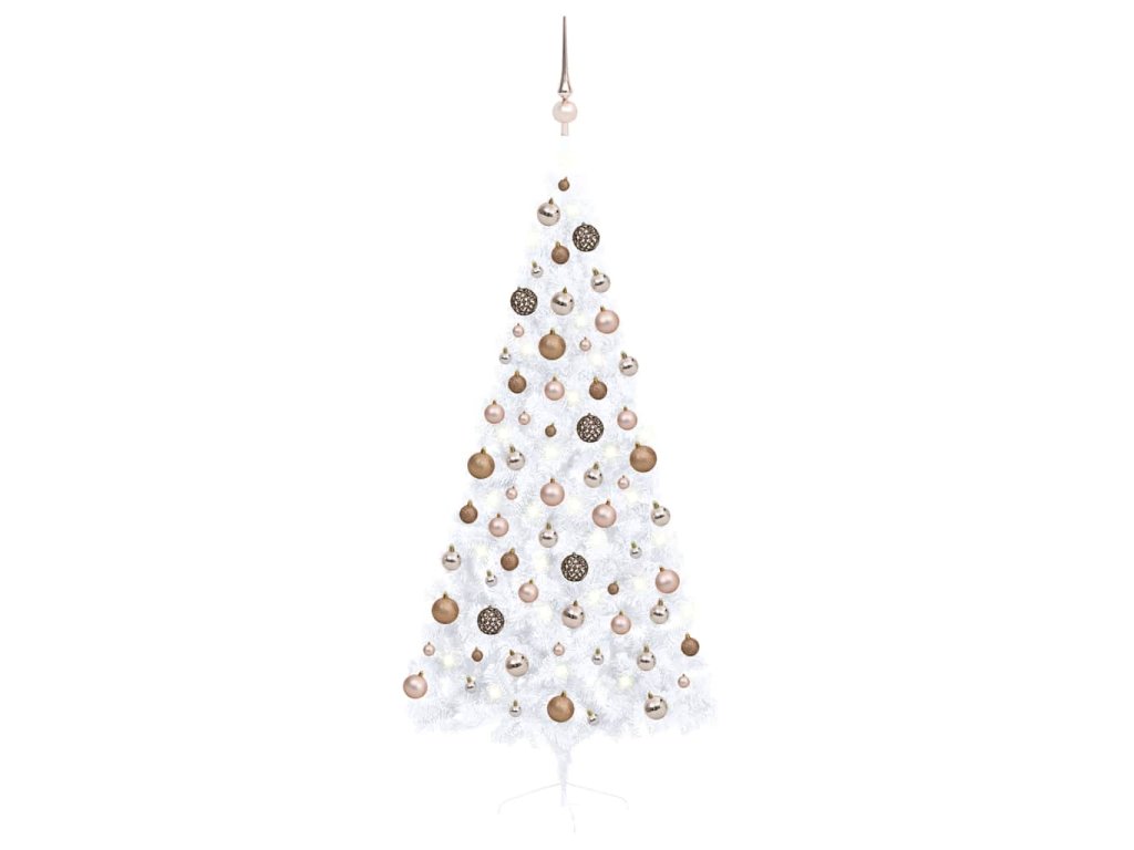Umělý vánoční půl stromek s LED a sadou koulí bílý 180 cm 3077570