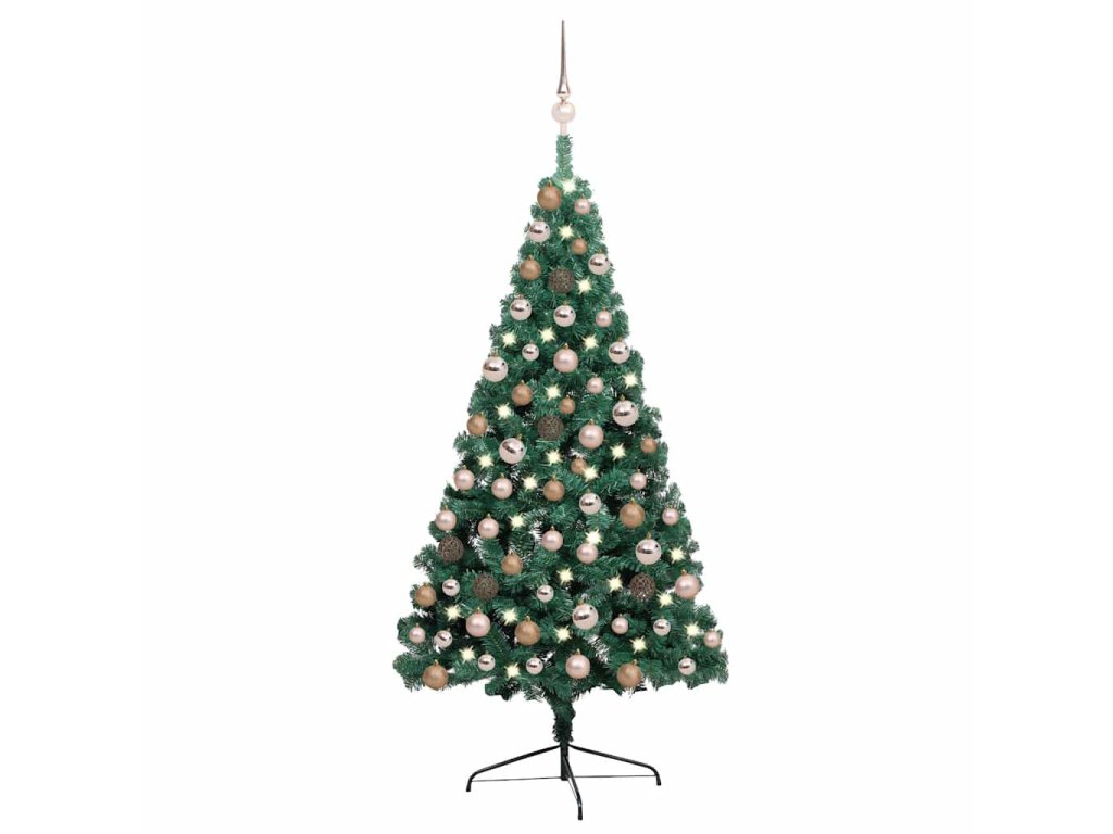 Umělý vánoční půl stromek s LED a sadou koulí zelený 120 cm 3077563