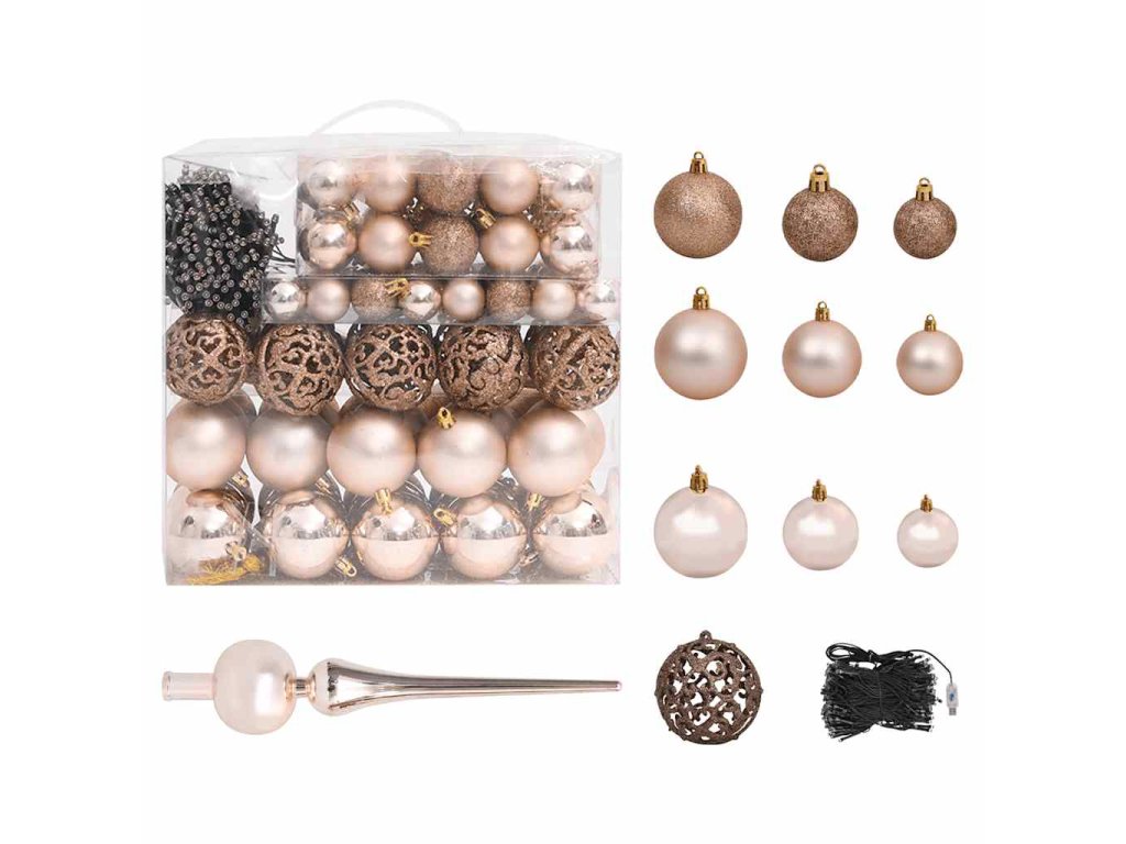 Umělý vánoční stromek LED osvětlení sada koulí a šišky 210 cm 3077615