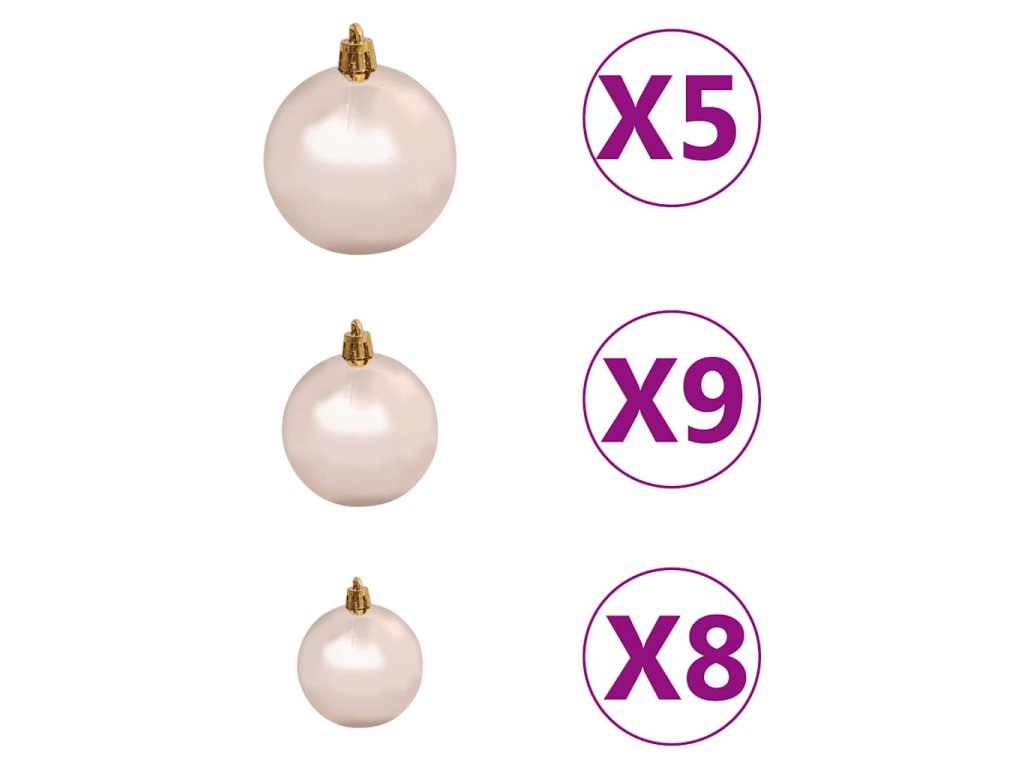 Jehličí tohoto velmi realistického stromku je vymodelované vstřikováním z PE. Stromek je lehký, klimaticky odolný a má dlouhou životnost. Tento půvabný vánoční strom je voděodolný. Větvičky lze uspořádat do jakékoli podoby. Tento stromek můžete používat rok co rok o dalších Vánocích, je tedy mnohem ekonomičtější než živý stromek. Disponuje také ocelovým podstavcem, jenž zaručuje jeho stabilitu. Je vybaven energeticky úspornými LED světly, krásně svítí a vytváří útulnou vánoční atmosféru. Vánoční stromek je navíc ozdobený krásnou špičkou a koulemi a bude středem pozornosti vašeho domova.