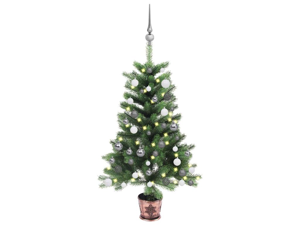 Umělý vánoční stromek s LED a sadou koulí 90 cm zelený 3077724