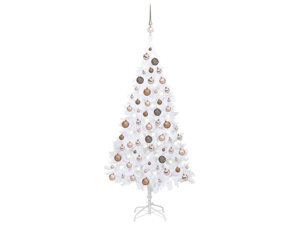 Umělý vánoční stromek s LED a sadou koulí bílý 120 cm PVC 3077625