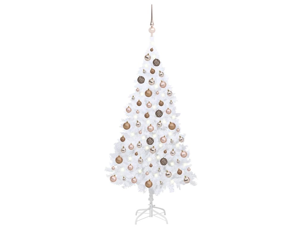 Umělý vánoční stromek s LED a sadou koulí bílý 150 cm PVC 3077626