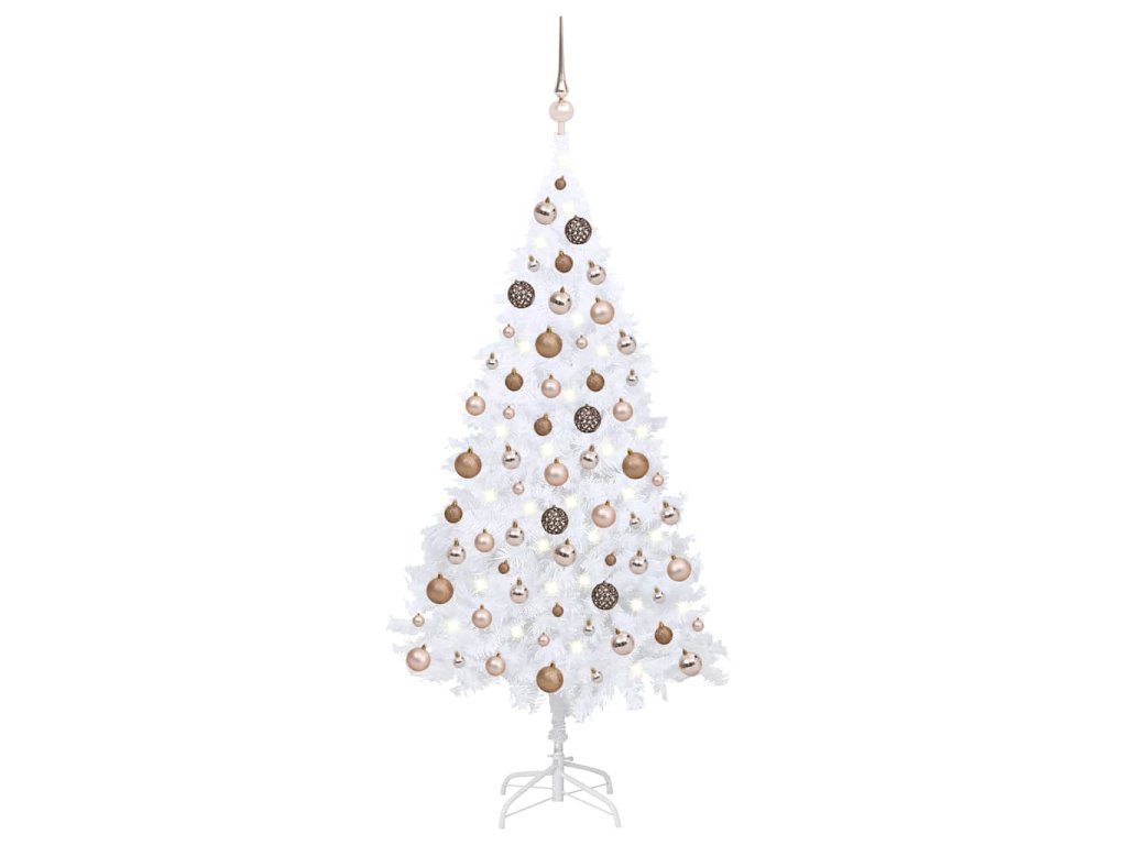Umělý vánoční stromek s LED a sadou koulí bílý 180 cm PVC 3077627