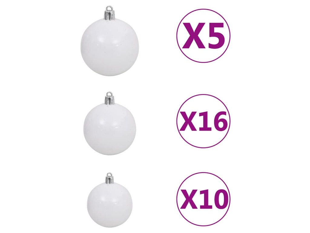 Umělý vánoční stromek s LED a sadou koulí bílý 210 cm 3077721