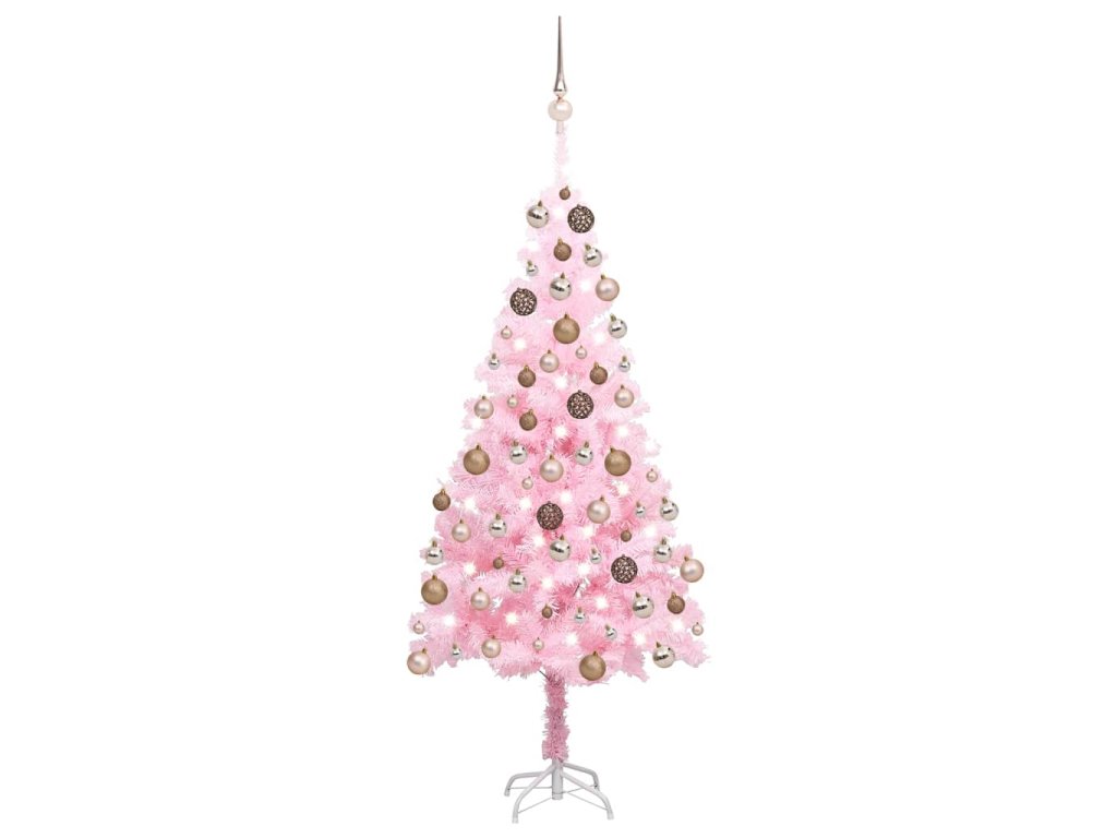 Umělý vánoční stromek s LED a sadou koulí růžový 120 cm PVC 3077583