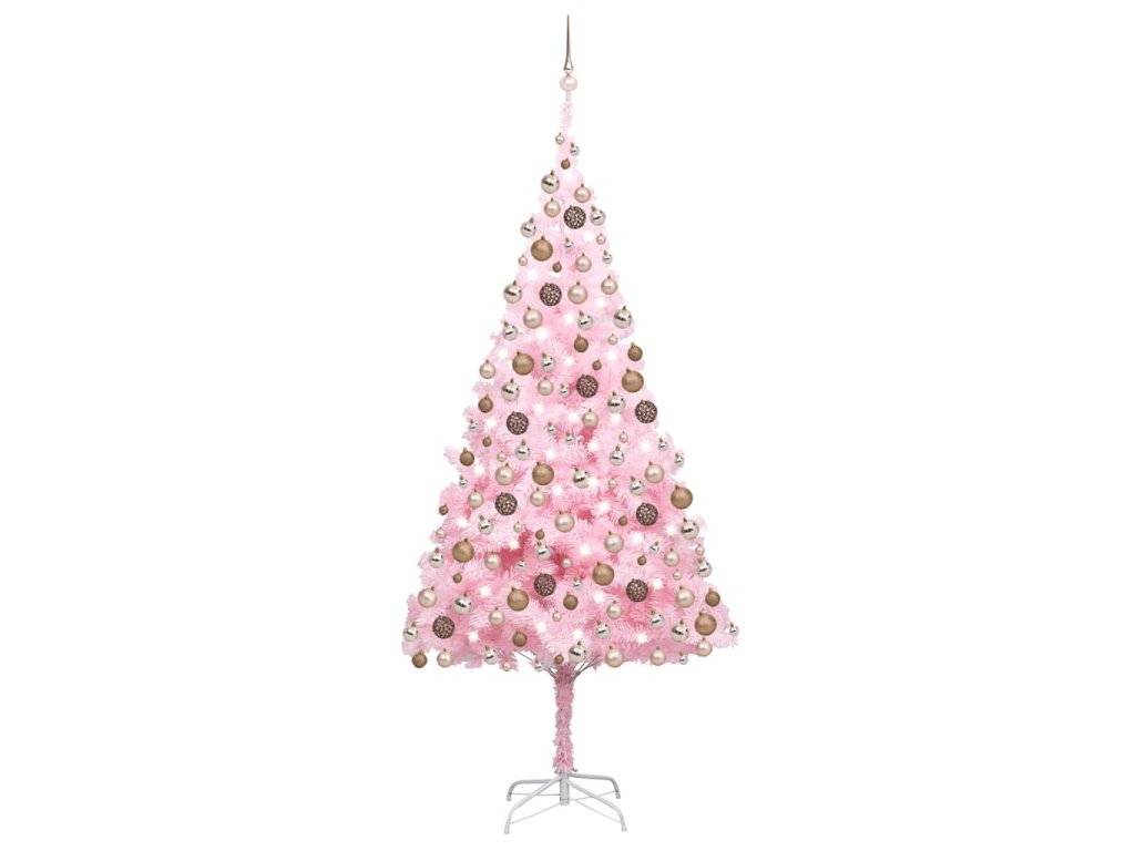 Umělý vánoční stromek s LED a sadou koulí růžový 210 cm PVC 3077586