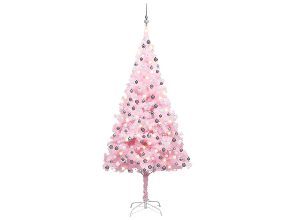 Umělý vánoční stromek s LED a sadou koulí růžový 210 cm PVC 3077672
