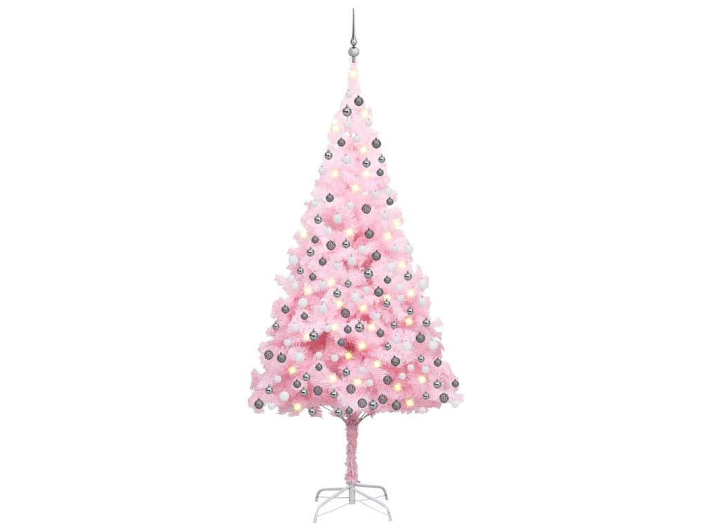 Umělý vánoční stromek s LED a sadou koulí růžový 240 cm PVC 3077673