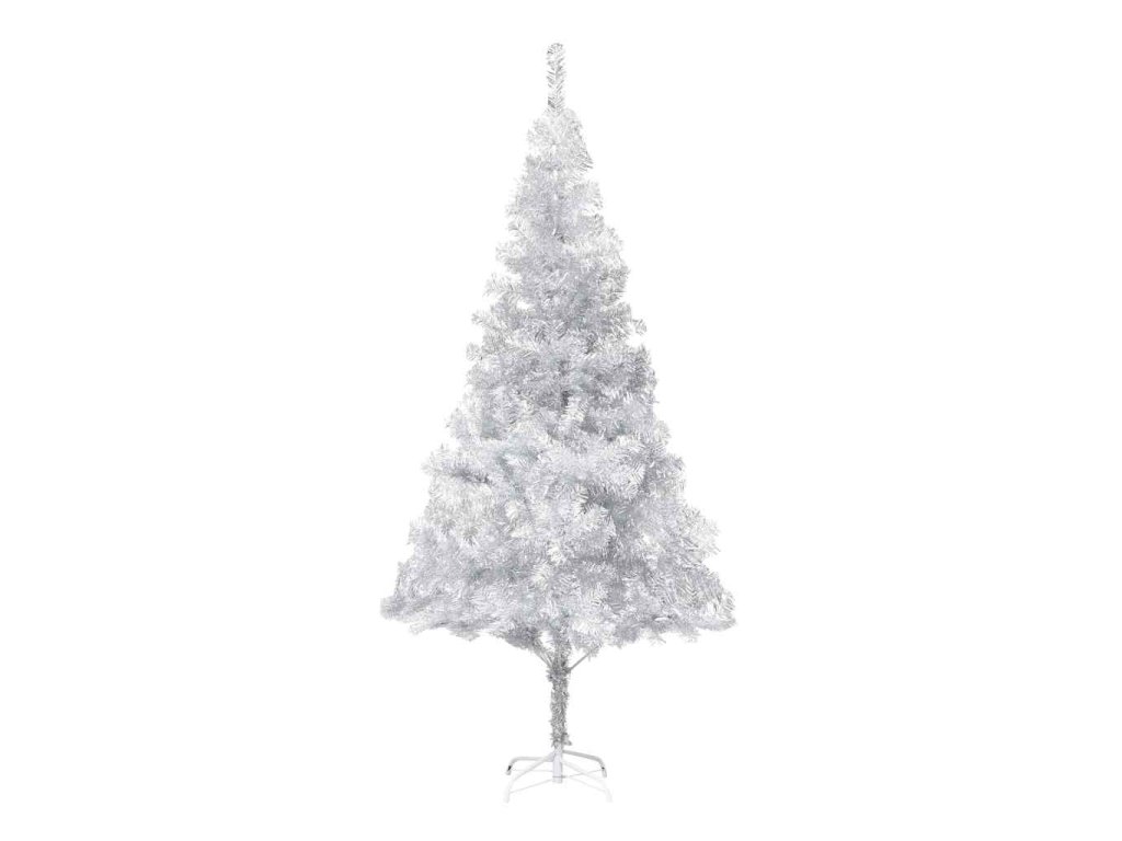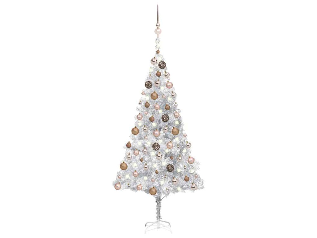 Umělý vánoční stromek s LED a sadou koulí stříbrný 180 cm PET 3077610