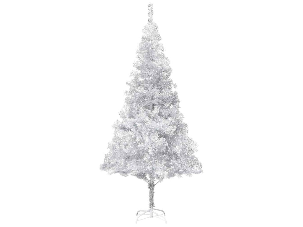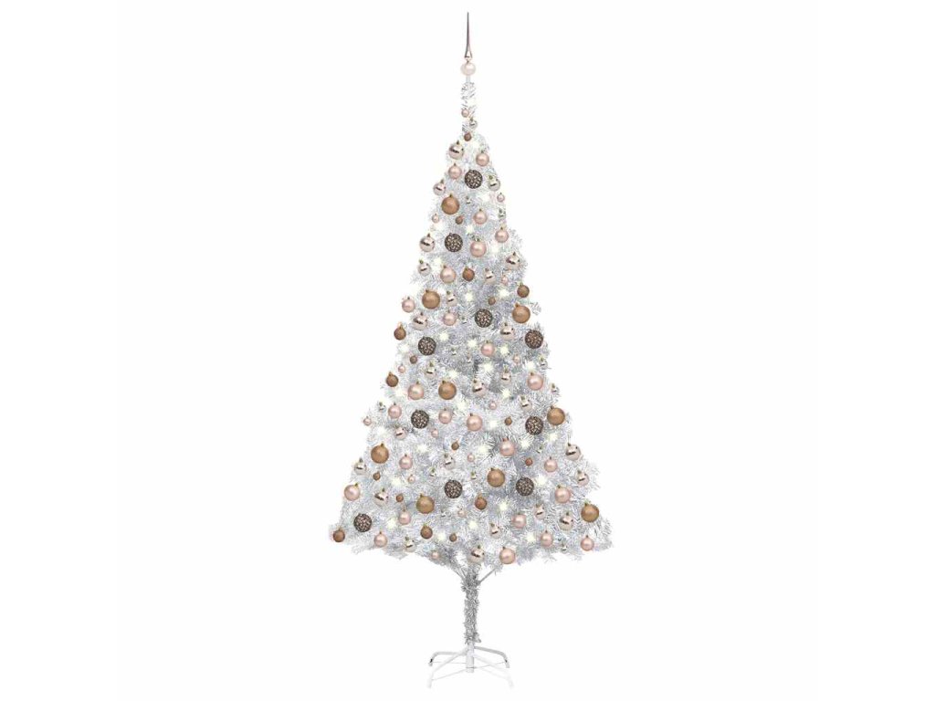 Umělý vánoční stromek s LED a sadou koulí stříbrný 240 cm PET 3077612