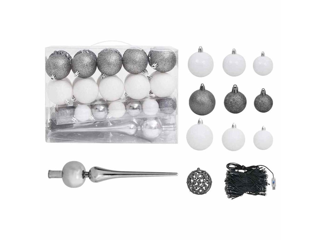 - Barva koulí: lesklá bílá, třpytivá bílá, lesklá šedá a třpytivá šedá