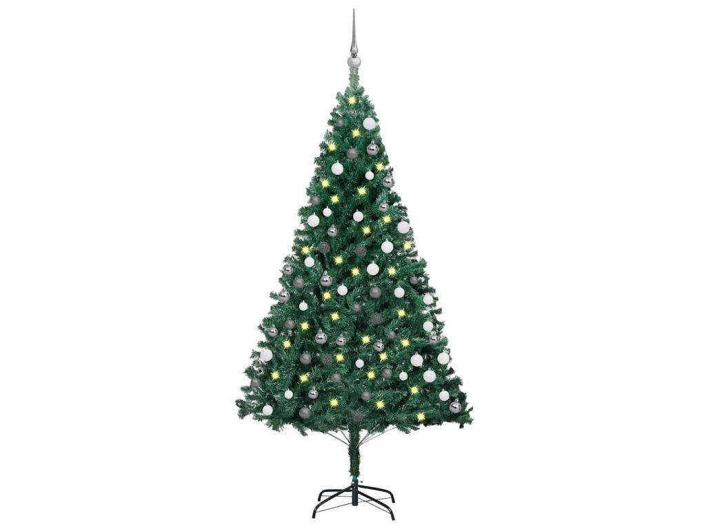 Umělý vánoční stromek s LED a sadou koulí zelený 150 cm PVC 3077707