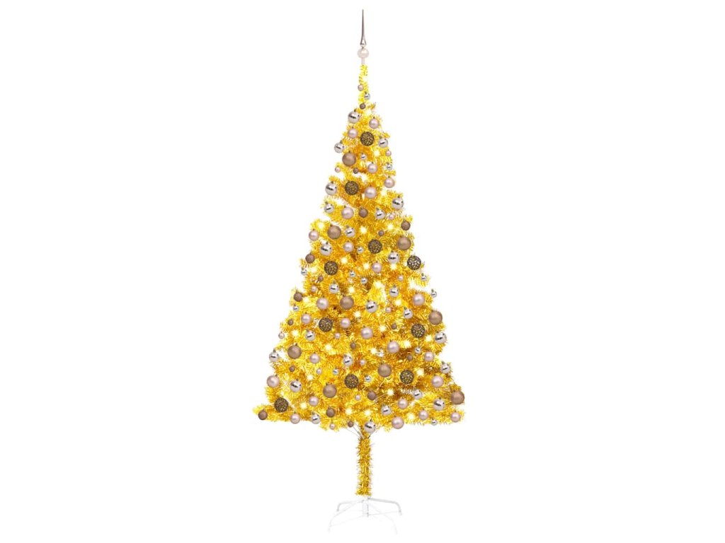 Umělý vánoční stromek s LED a sadou koulí zlatý 210 cm PET 3077606