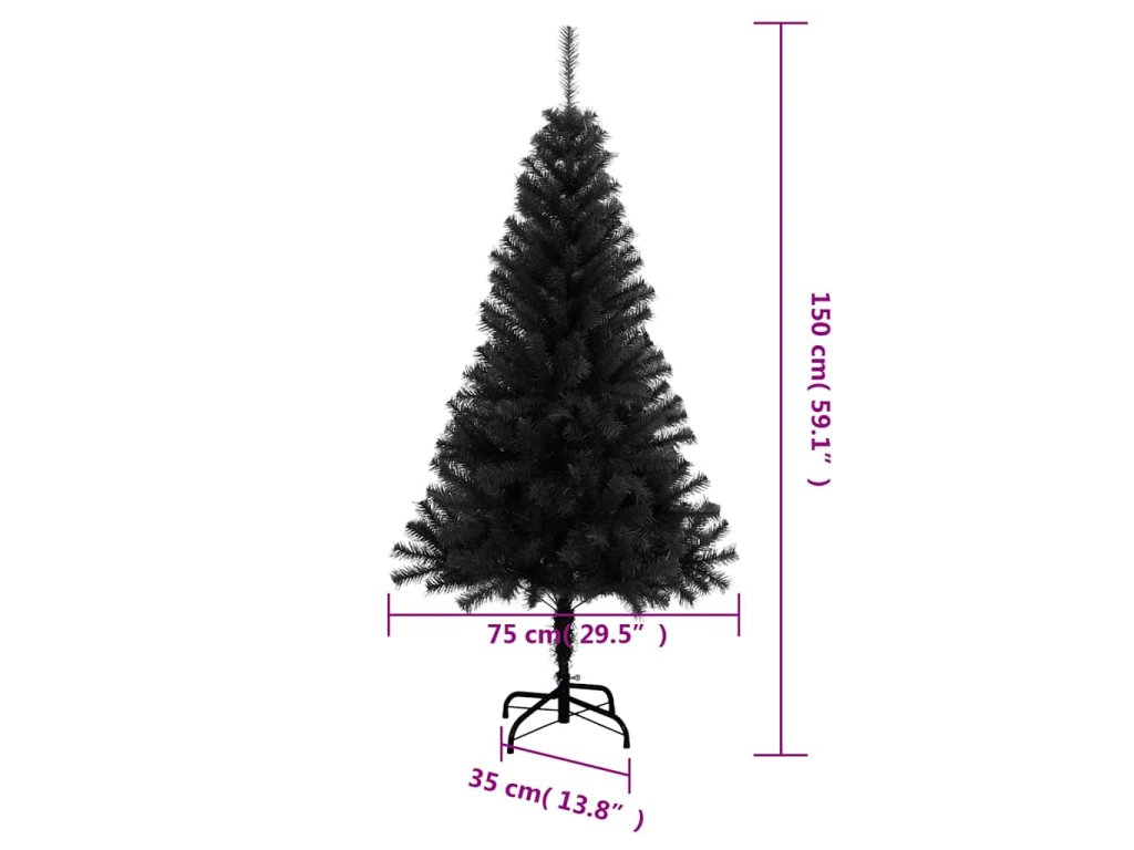 Umělý vánoční stromek se stojanem černý 150 cm PVC 321000
