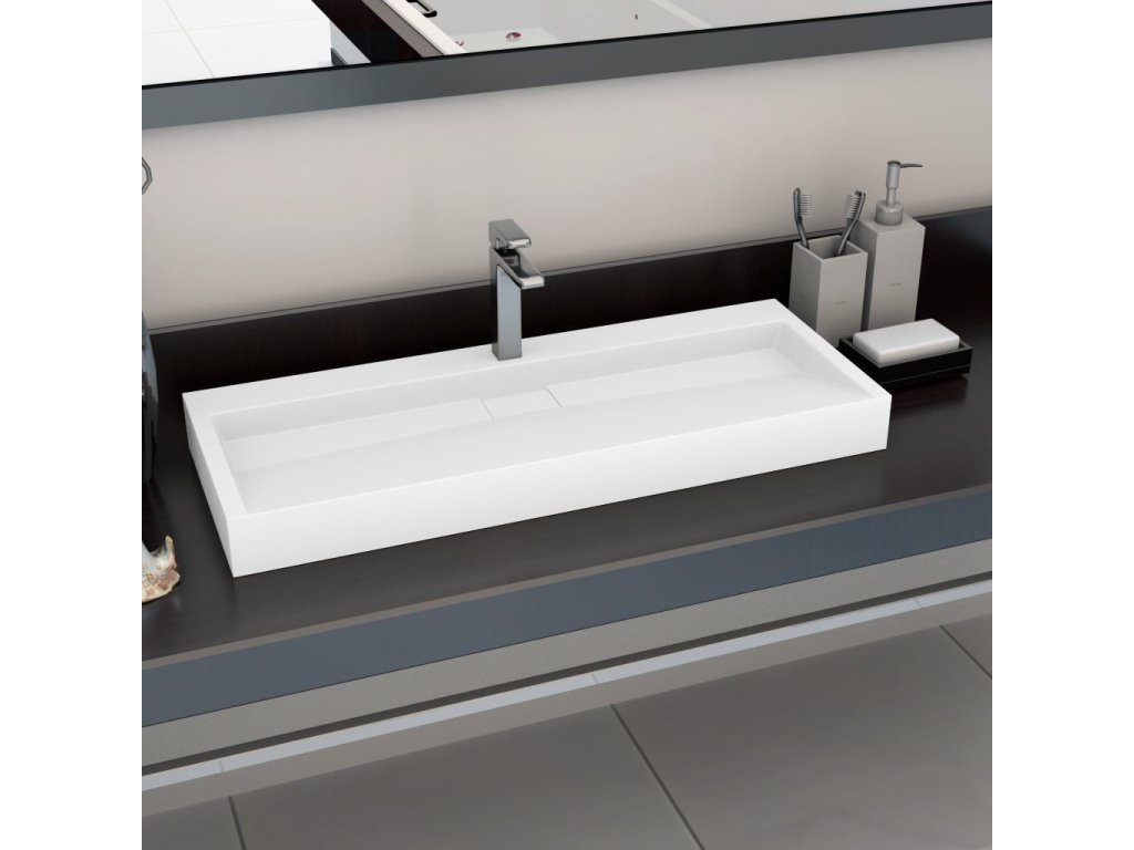 Umyvadlo 120 x 46 x 11 cm minerální/mramorový kompozit bílé 144067