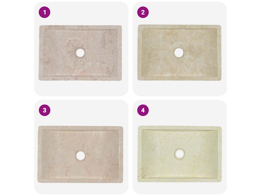 Poznámka: Mramor je přírodní produkt, a proto se v jeho zbarvení mohou vyskytovat drobné rozdíly. Skutečný produkt může být světlejší nebo tmavší než na fotografiích a v jeho zbarvení se též mohou vyskytnout kombinace různých barev.