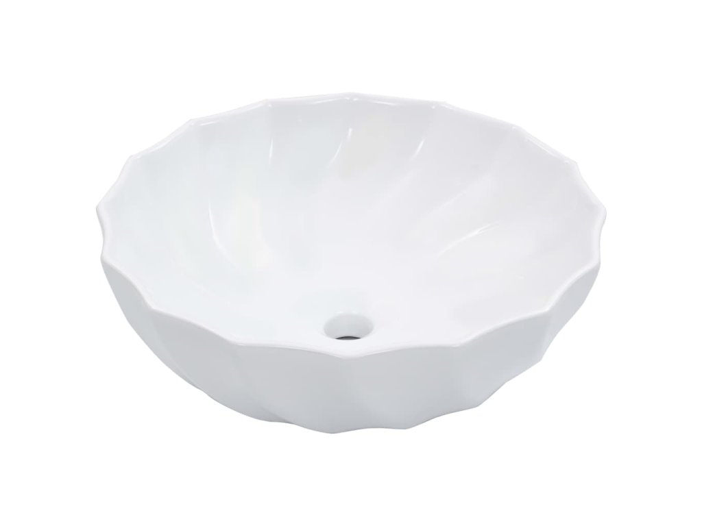 Toto kulaté umyvadlo s květinovým vzorem je vyrobeno z keramiky a představuje stylový a nadčasový doplněk do každé koupelny, umývárny, šatny nebo na toalety.