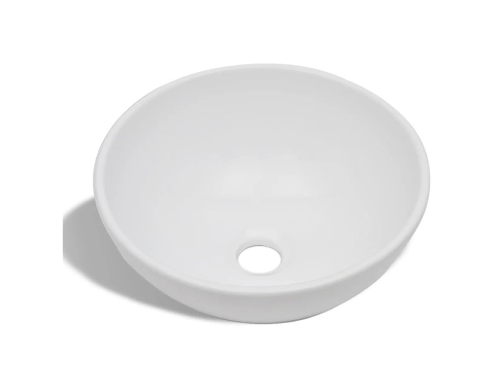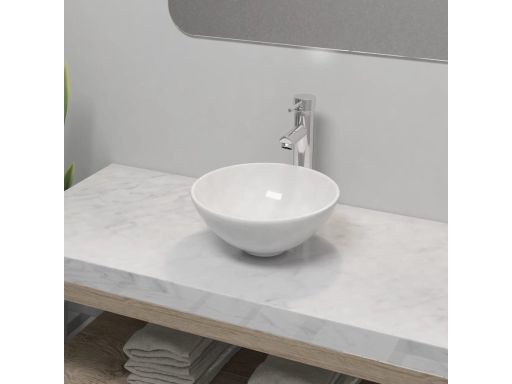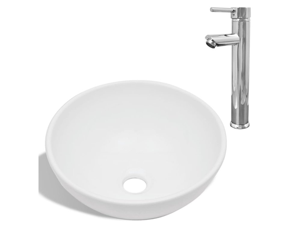 Umyvadlo do koupelny s vodovodní baterií keramické kulaté bílé 275494