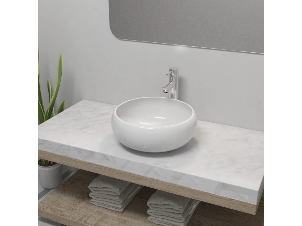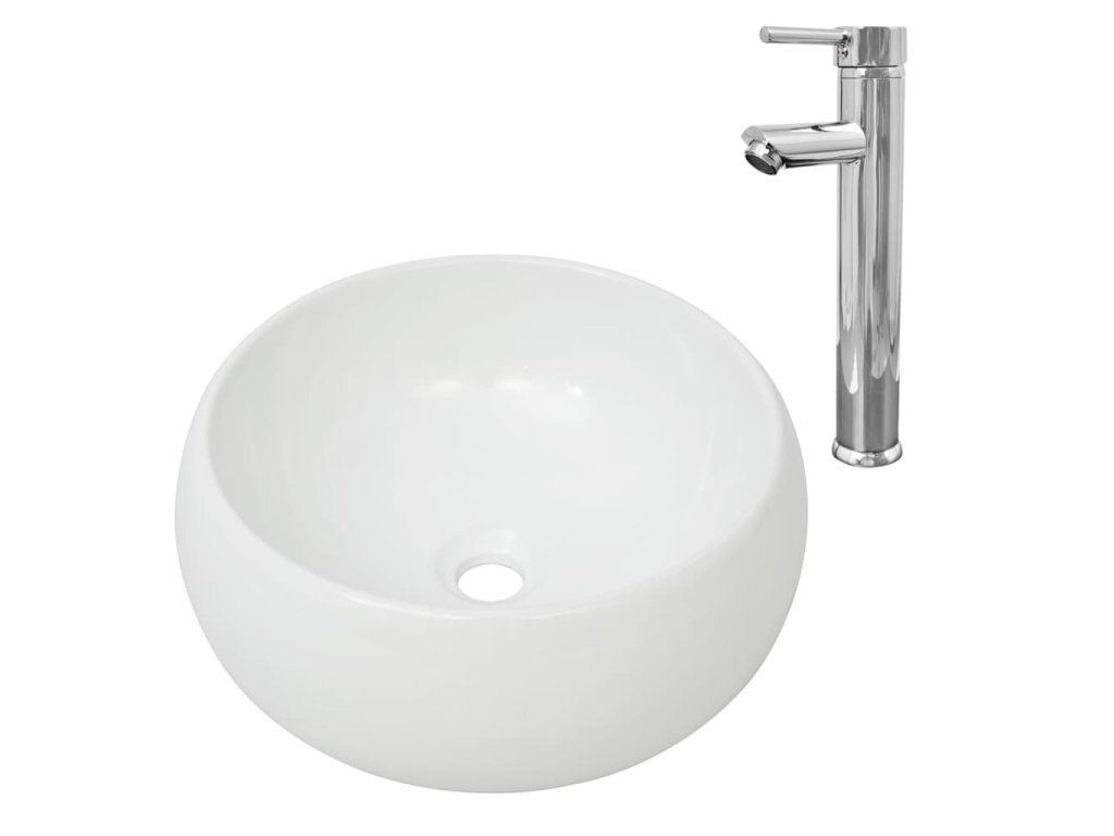 Umyvadlo do koupelny s vodovodní baterií keramické kulaté bílé 275495