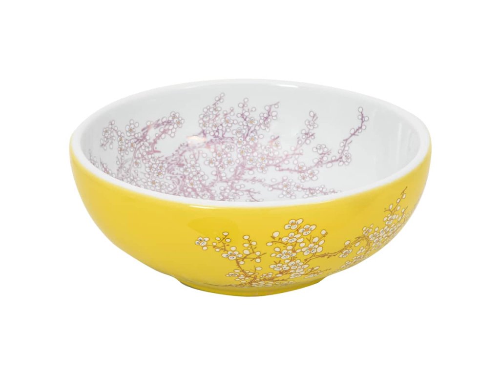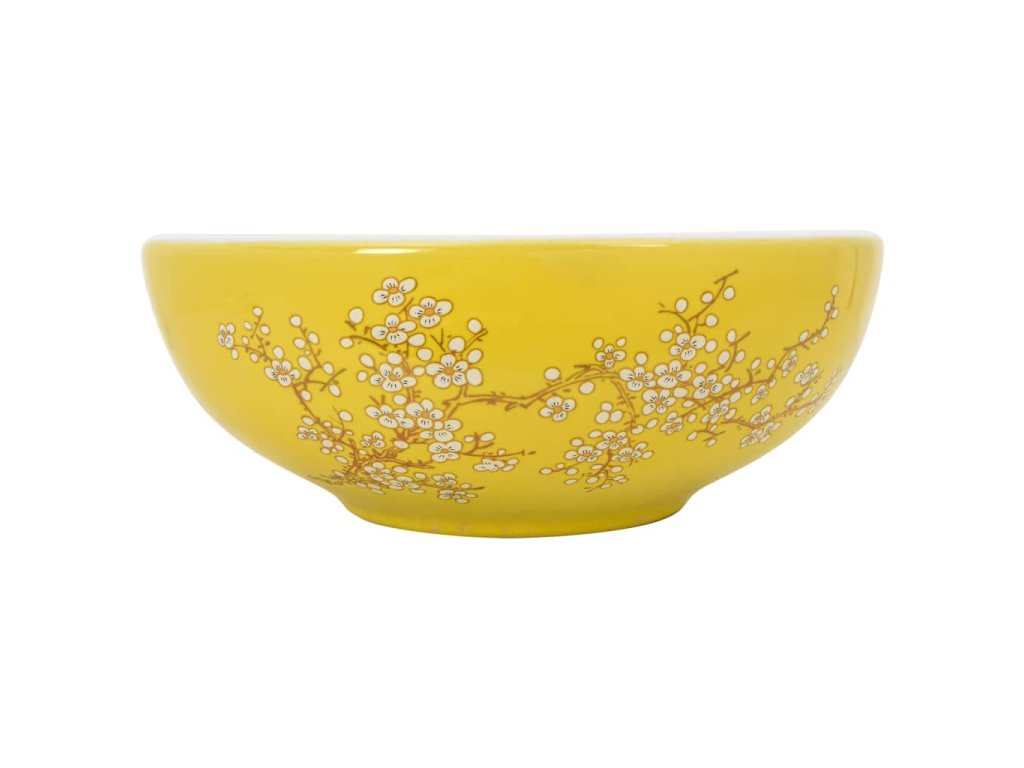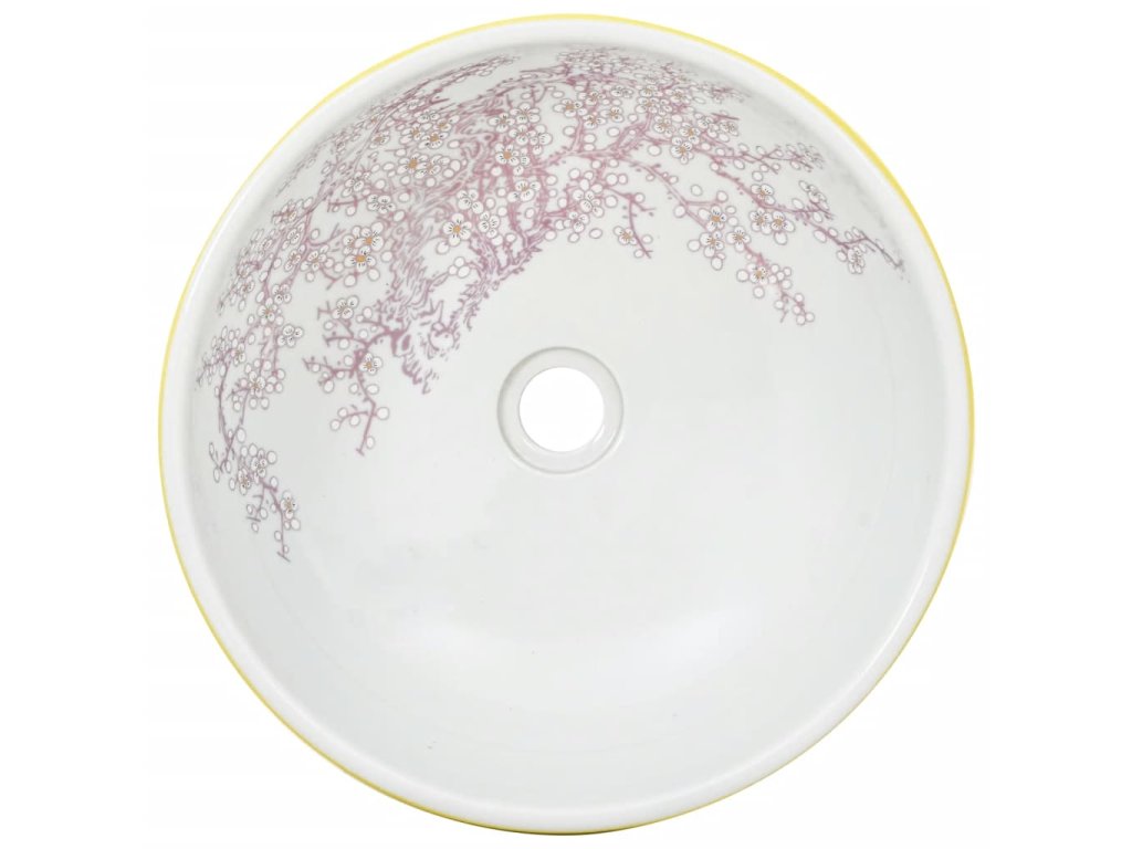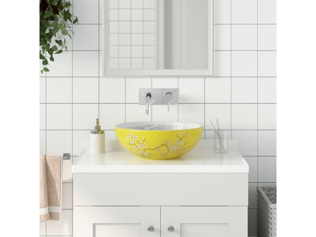 Umyvadlo na desku bílé a žluté kulaté Φ 41 x 14 cm keramika 155053