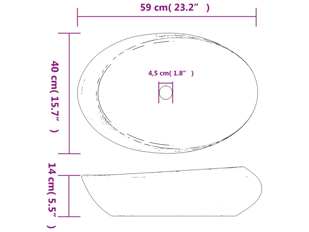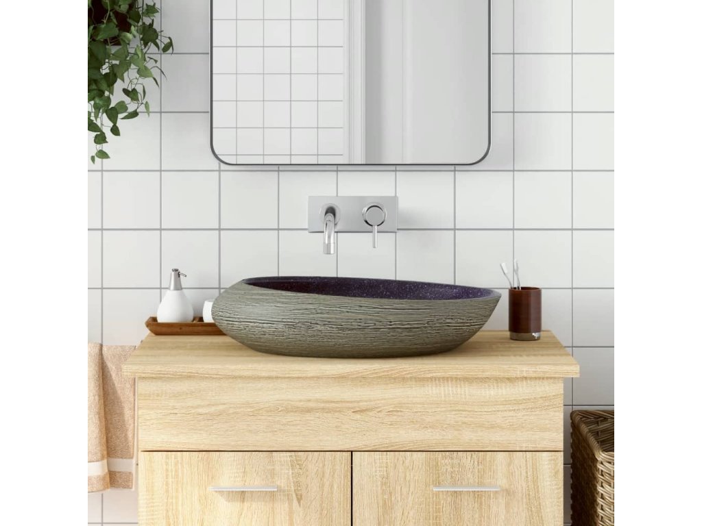 Umyvadlo na desku fialové a šedé oválné 59x40x14 cm keramika 155092