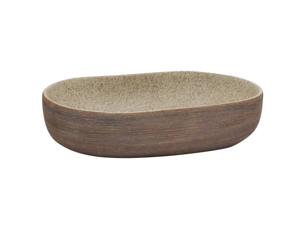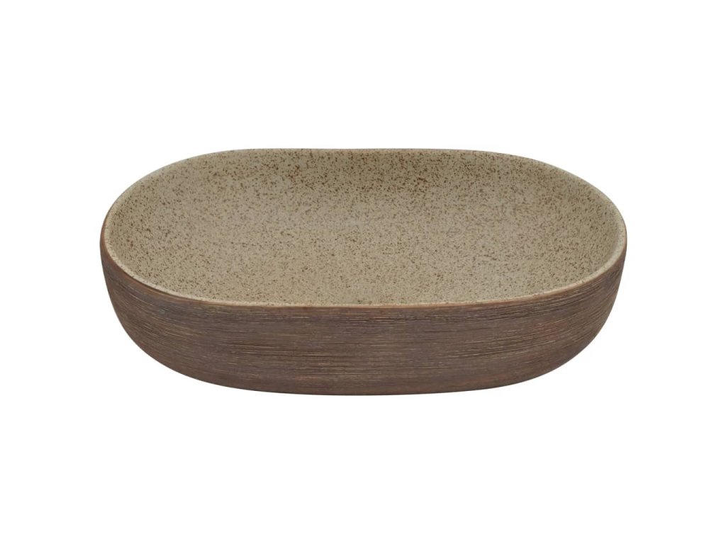 Umyvadlo na desku pískové a hnědé oválné 59x40x14 cm keramika 155104