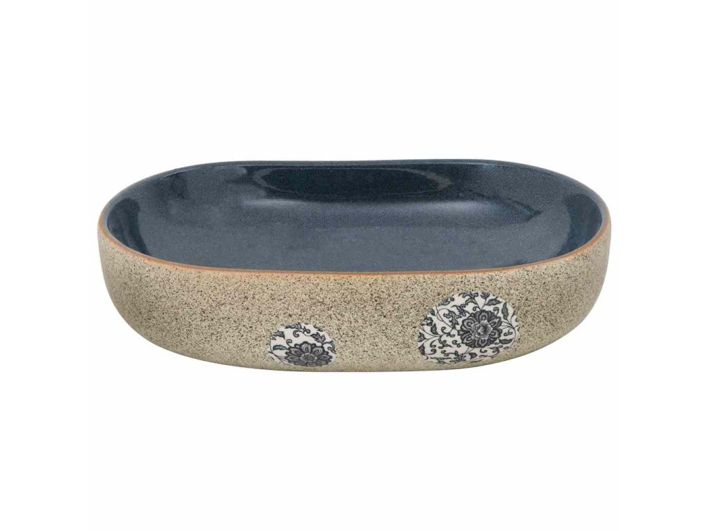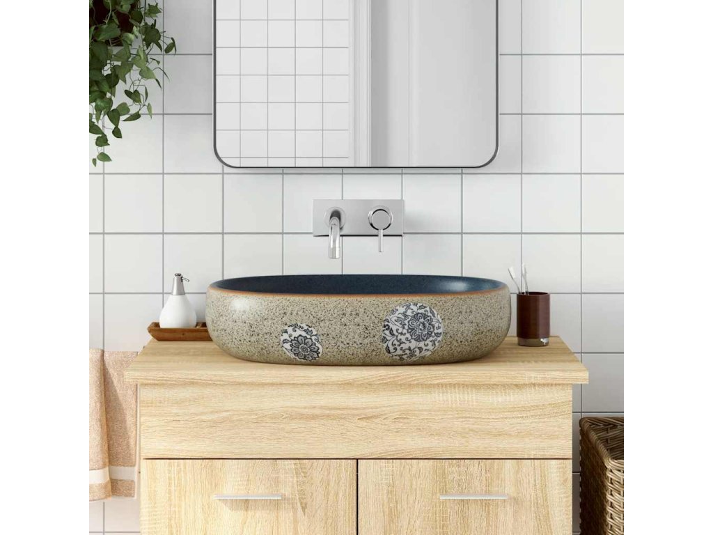 Umyvadlo na desku pískové a modré oválné 59x40x14 cm keramika 155103