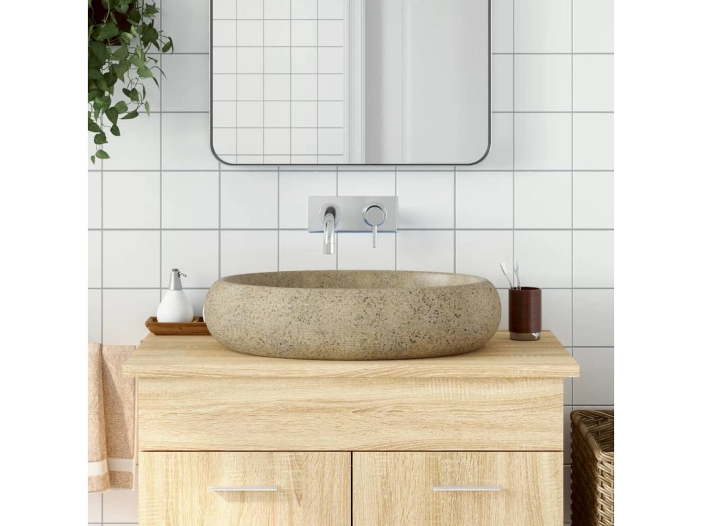 Umyvadlo na desku pískové oválné 59 x 40 x 15 cm keramika 155078