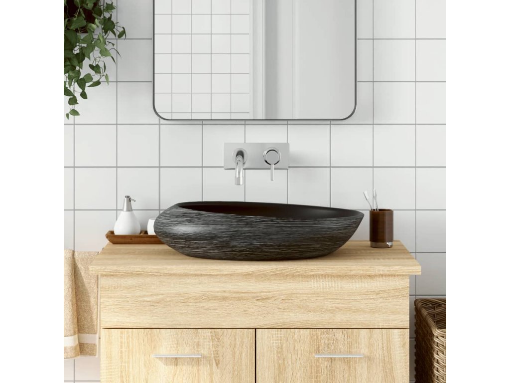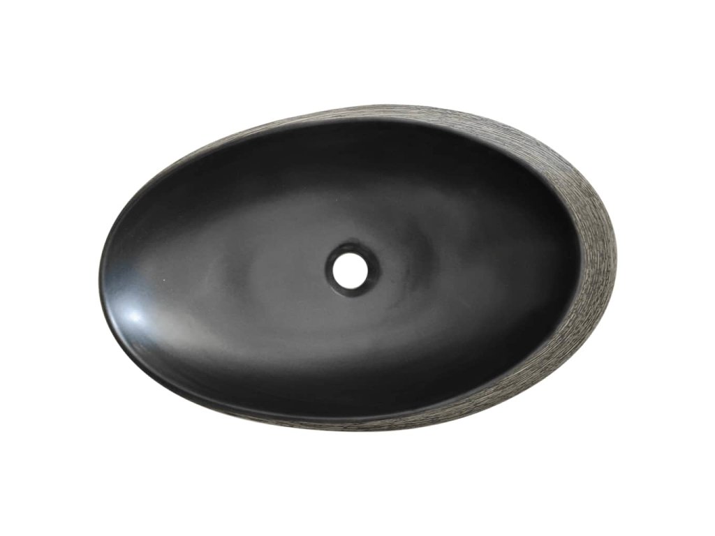 Umyvadlo na desku šedé a černé oválné 59 x 40 x 14 cm keramika 155091
