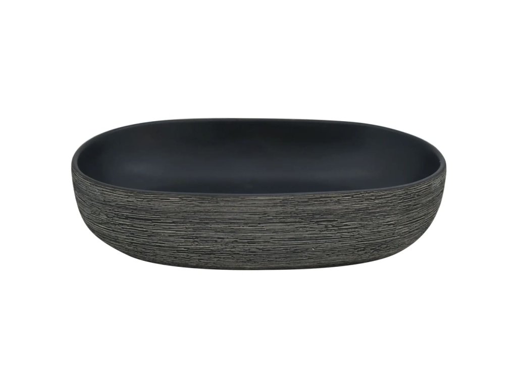 Umyvadlo na desku šedé a černé oválné 59 x 40 x 14 cm keramika 155109