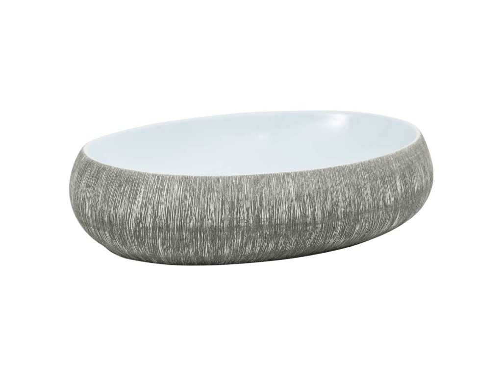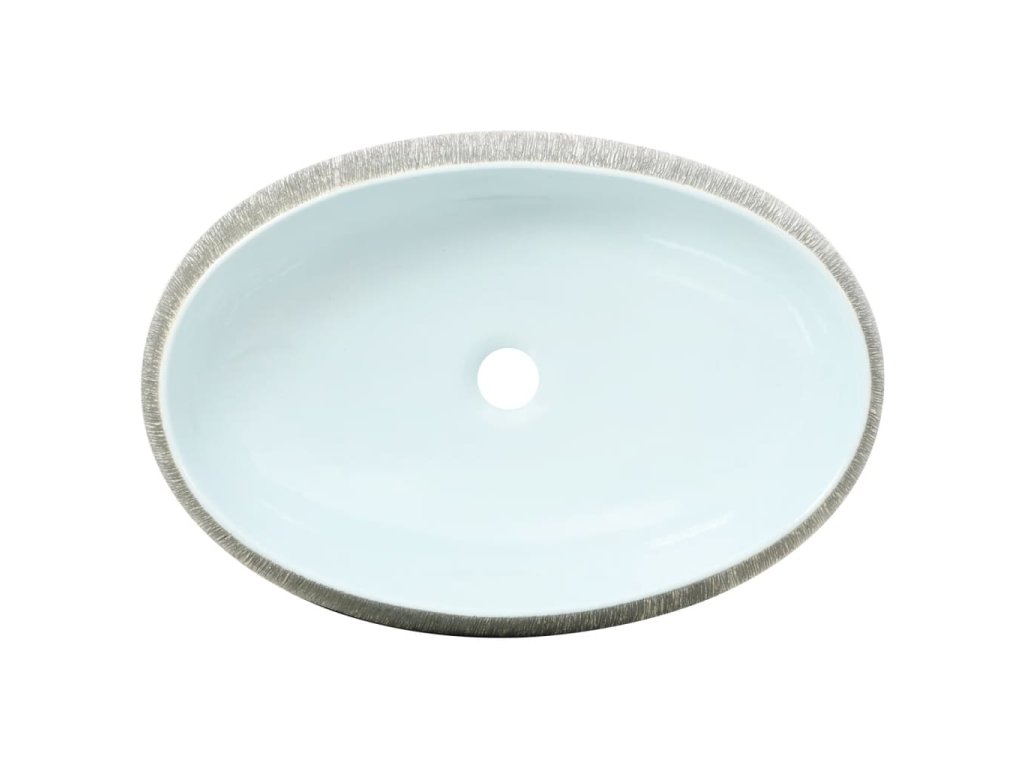 Umyvadlo na desku šedé a modré oválné 59 x 40 x 15 cm keramika 155093