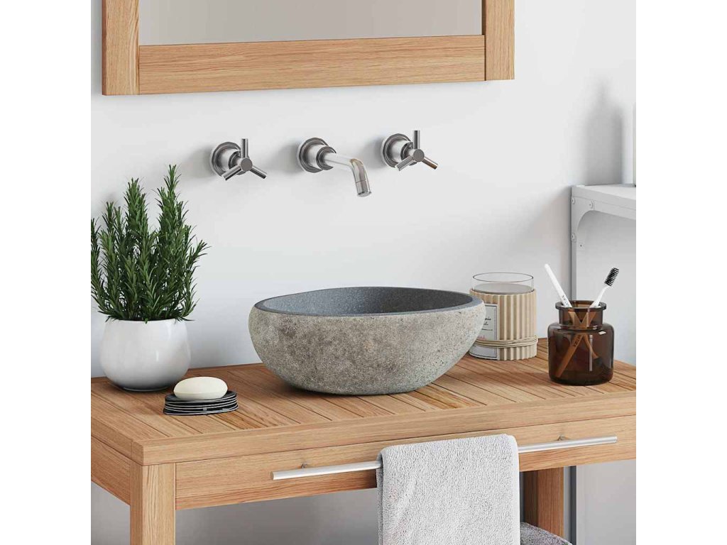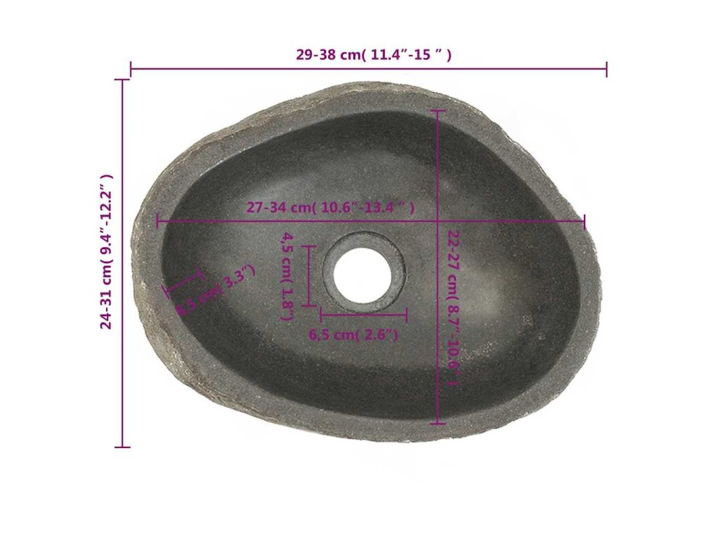 Toto oválné umyvadlo, vyrobené z přírodního říčního kamene bude stylovým doplňkem do každé koupelny nebo na toaletu.