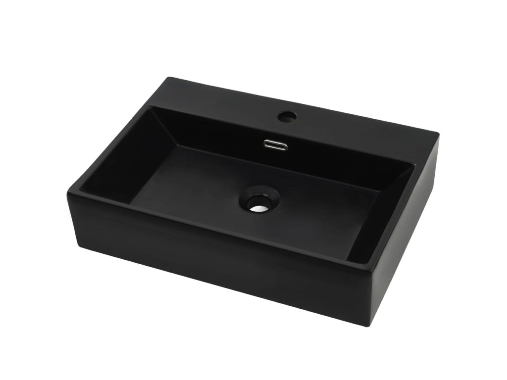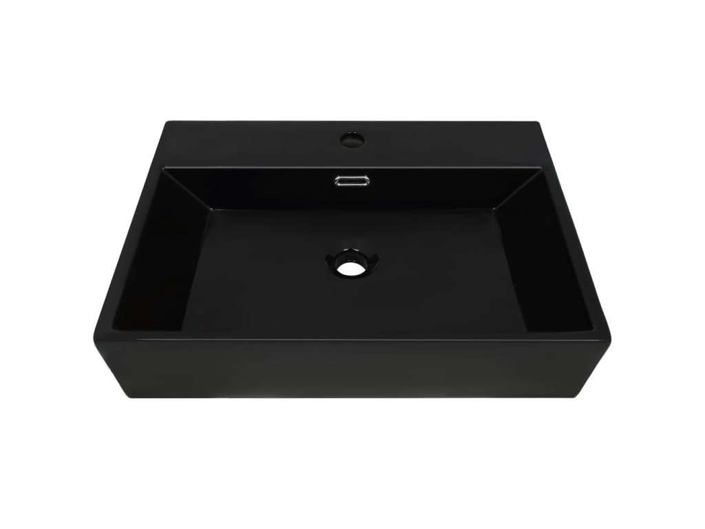 Umyvadlo s otvorem na baterii keramické černé 76x42,5x14,5 cm 142743