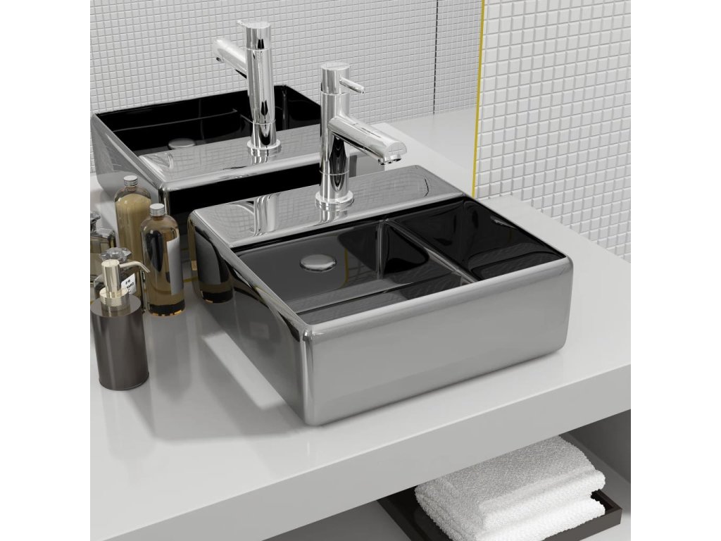 Koupelnové umyvadlo nejen že využijete každý den, ale stane se také skutečnou ozdobou vašeho interiéru. Díky svému modernímu a nadčasovému designu v blýskavé stříbrné barvě se hodí do každé koupelny. Umyvadlo je vyrobeno z keramiky, velmi snadno se tedy čistí. Vysoce lesklý povrch mu navíc dodává jisté kouzlo. Umyvadlo disponuje otvorem pro instalaci baterie.